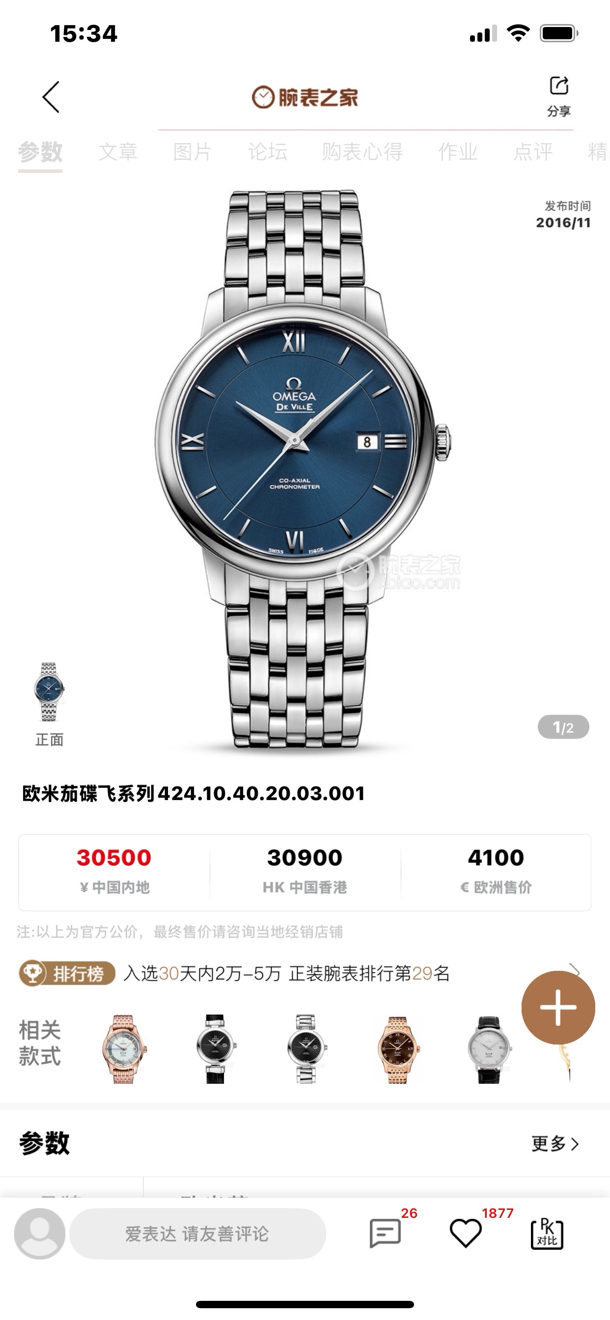 欧米茄碟飞424.10.40.20.03.001机械男性