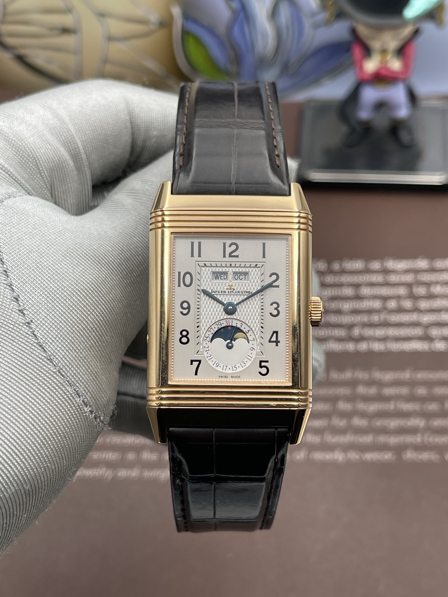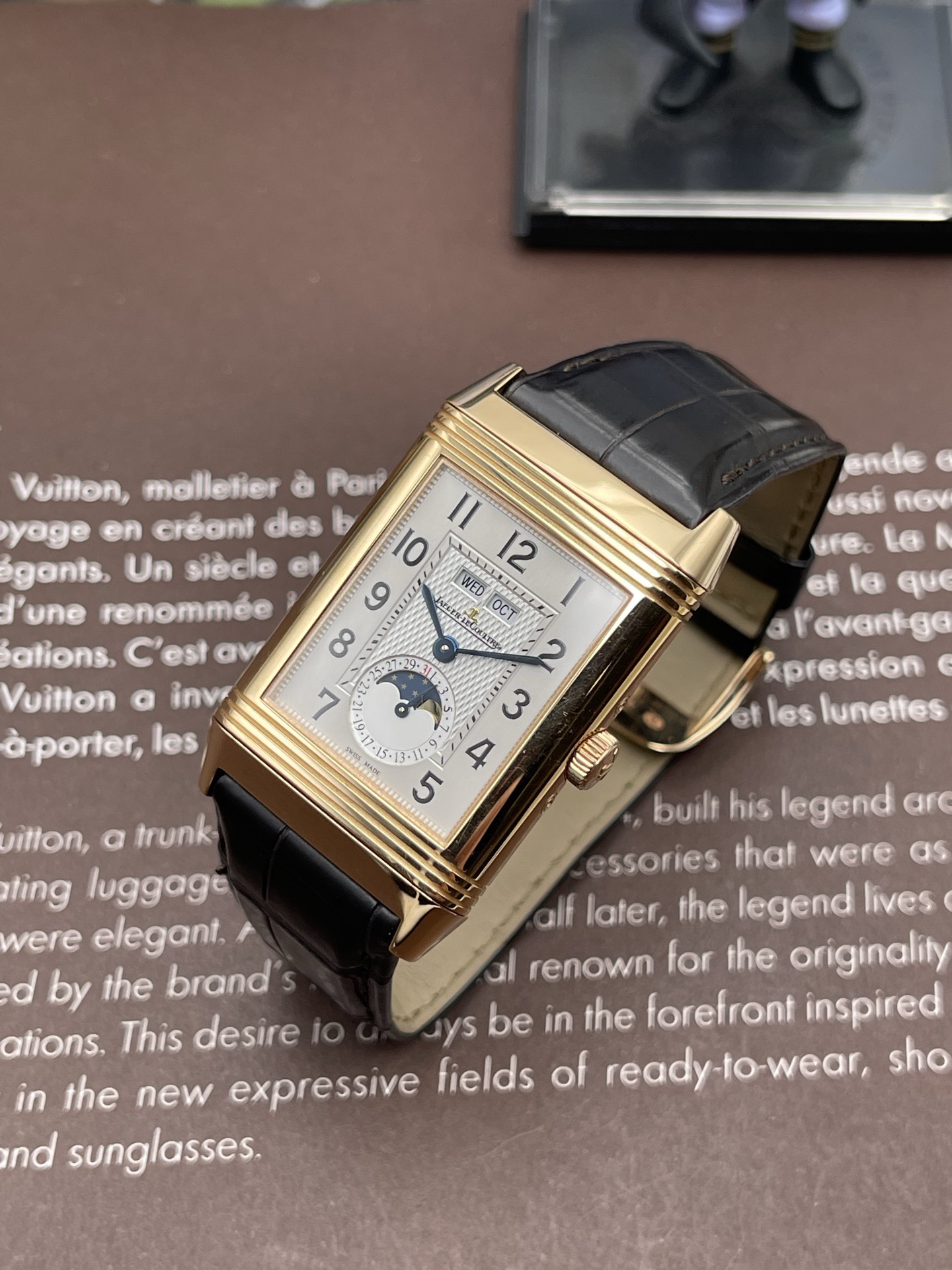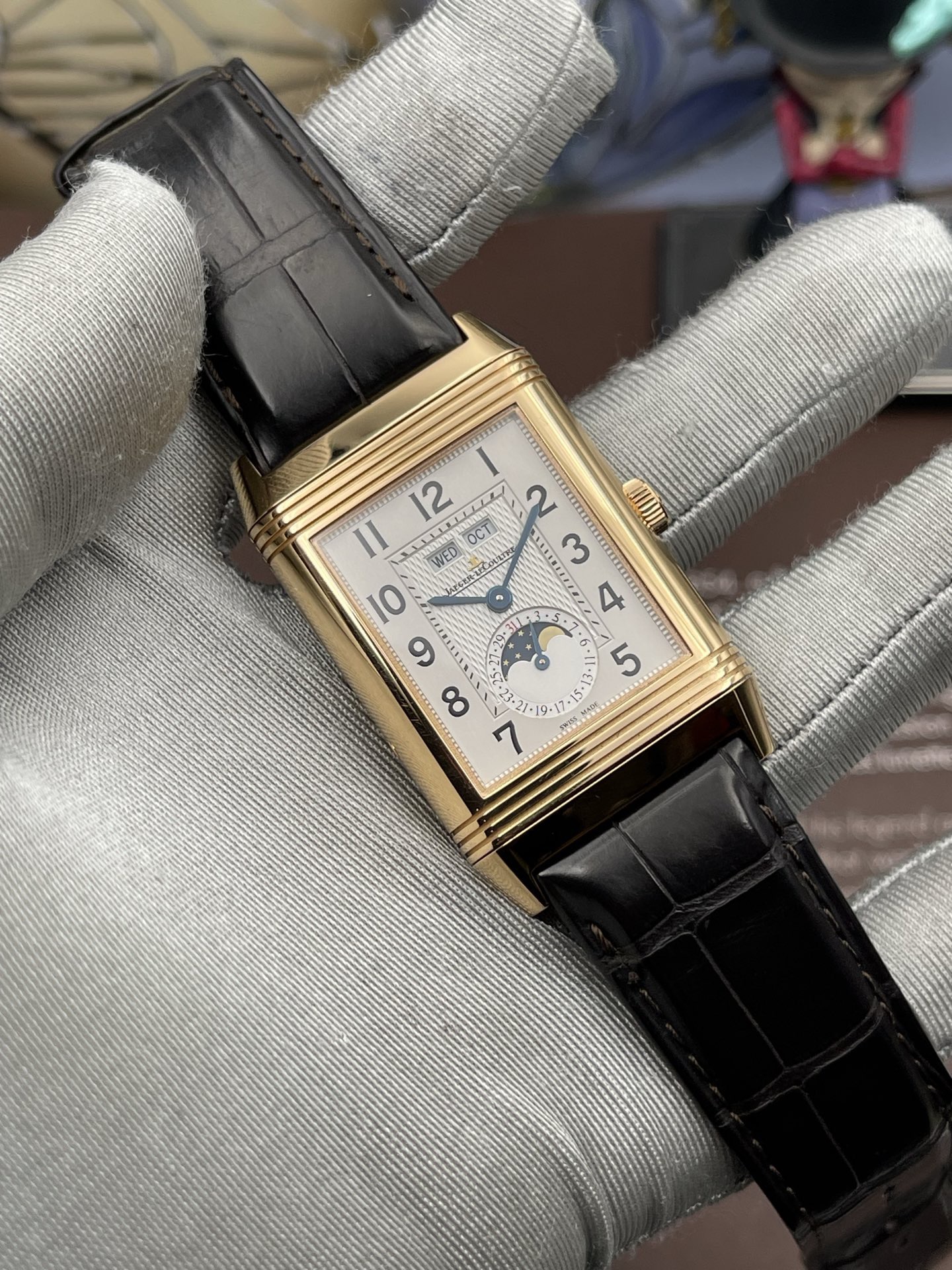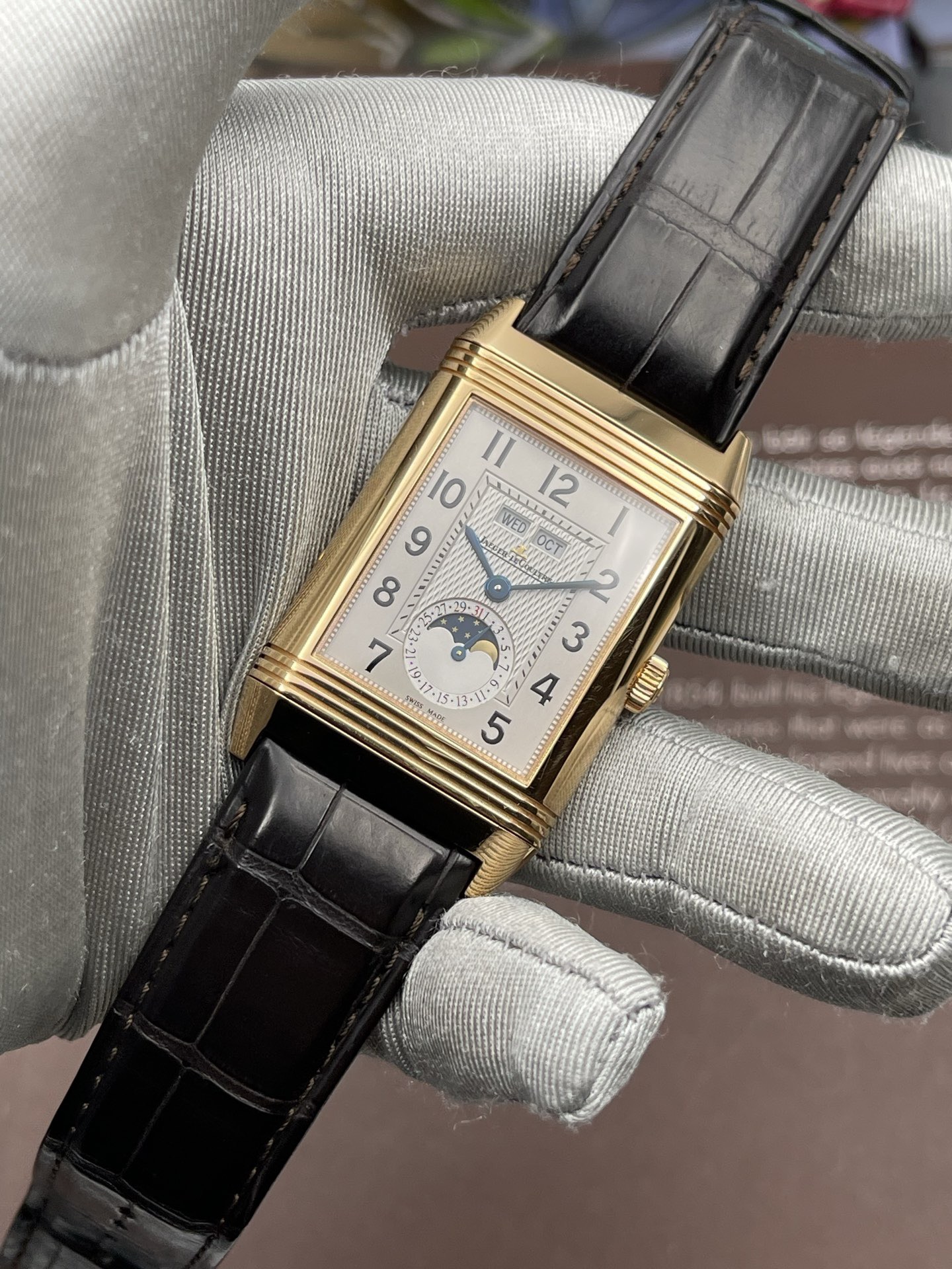 积家翻转系列玫瑰金年历手动男表