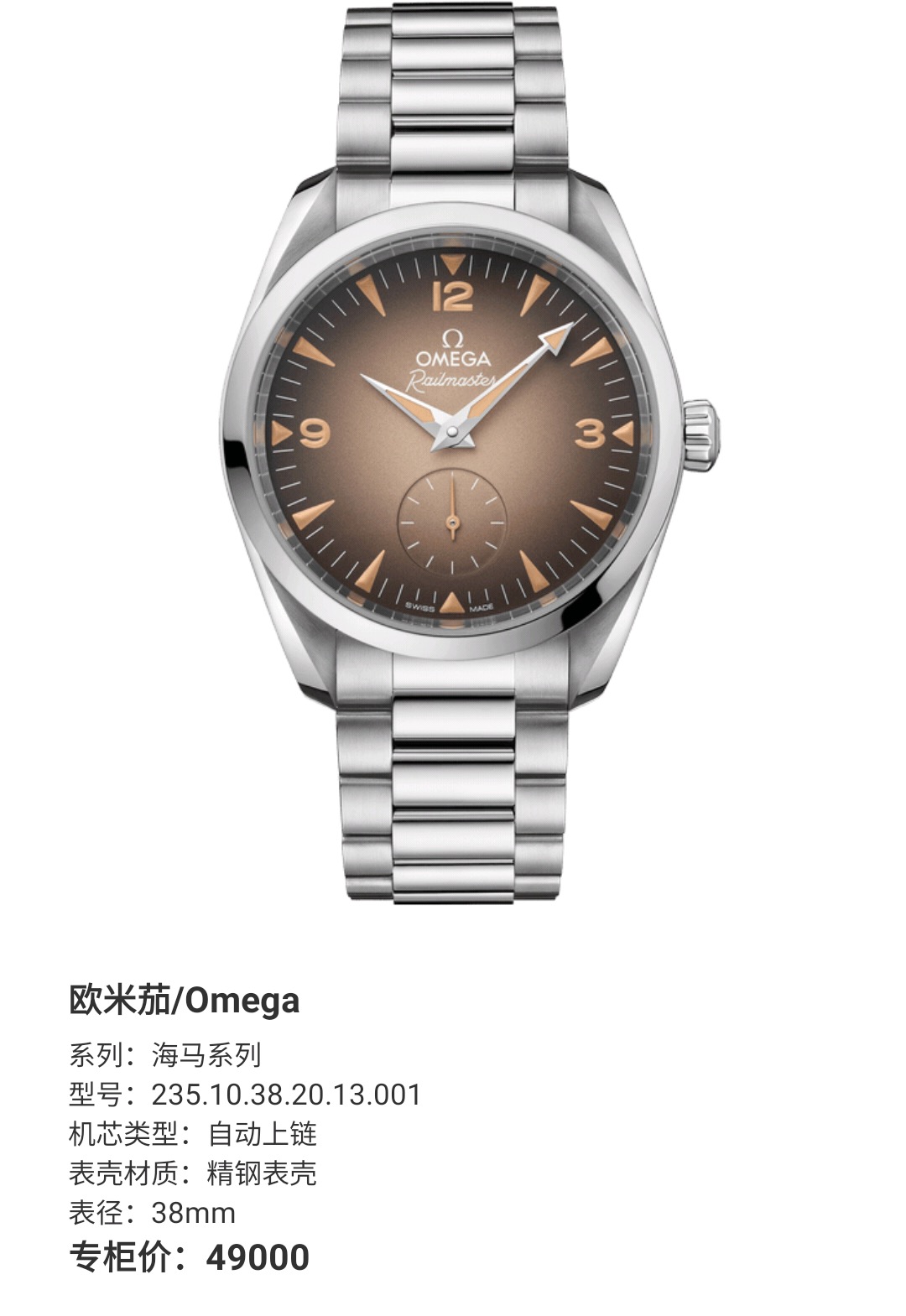 欧米茄海马235.10.38.20.13.001机械男性