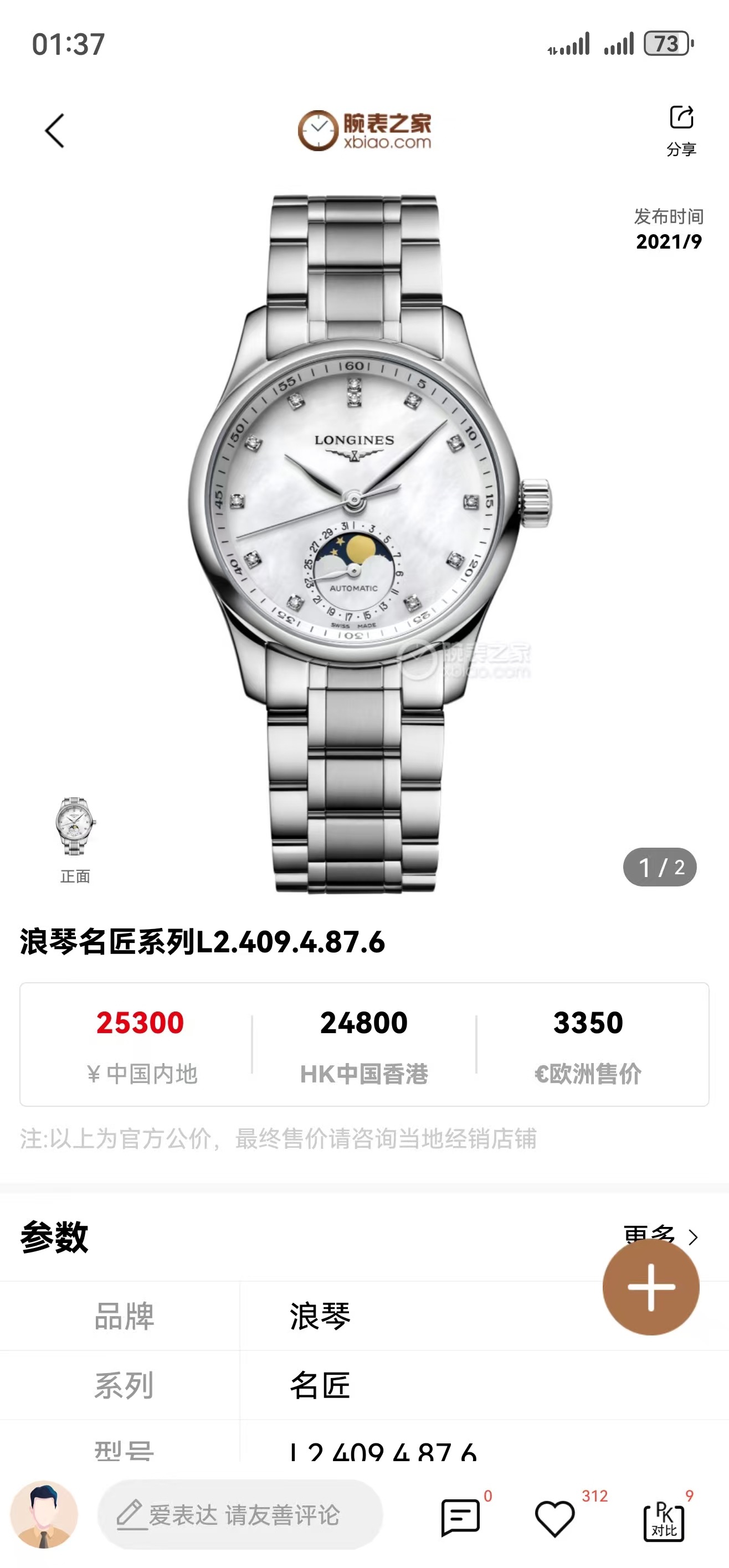 浪琴名匠L2.409.4.87.6机械女性
