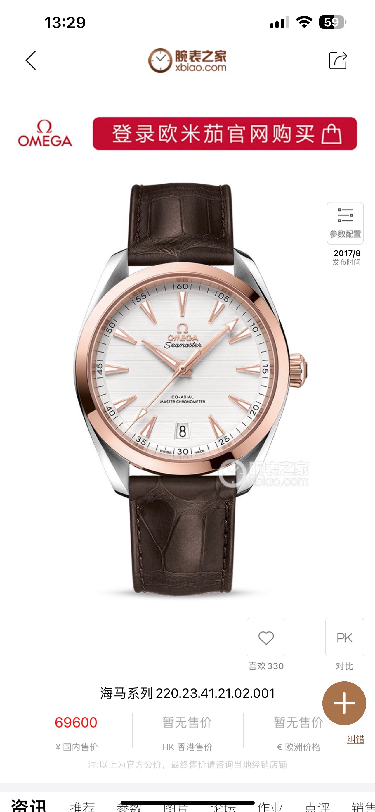 欧米茄海马150系列型号: 220.23.41.21.02.001新款AT8900同轴机芯 18k玫瑰金圈 白面金针! 表径41mm 品相完美 成色极品 实物非常漂亮 工价63500,现极品2022年全套