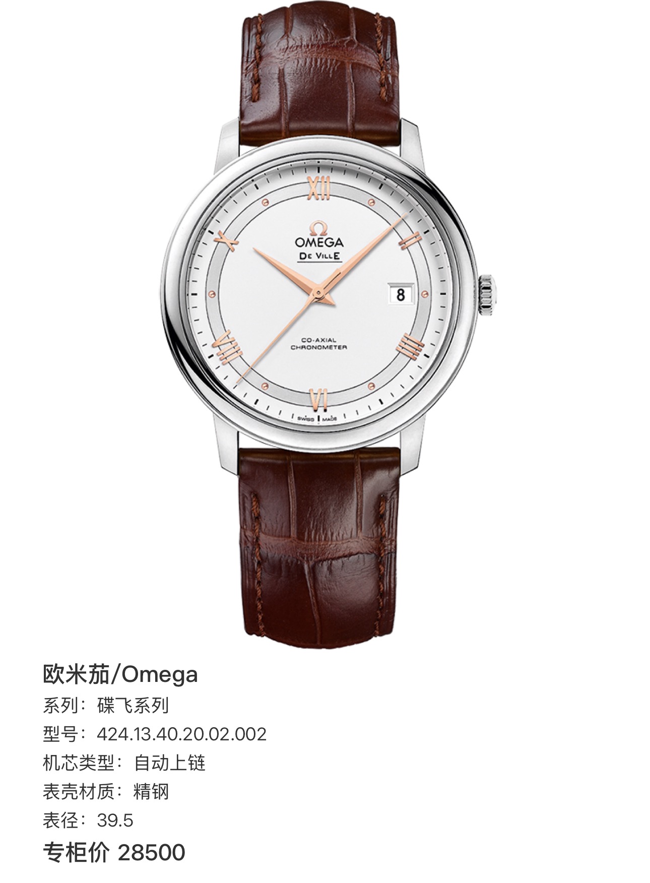 欧米茄/Omega 碟飞系列 424.13.40.20.02.002 自动上链 精钢 39.5 专柜价28500。单表。后配表扣