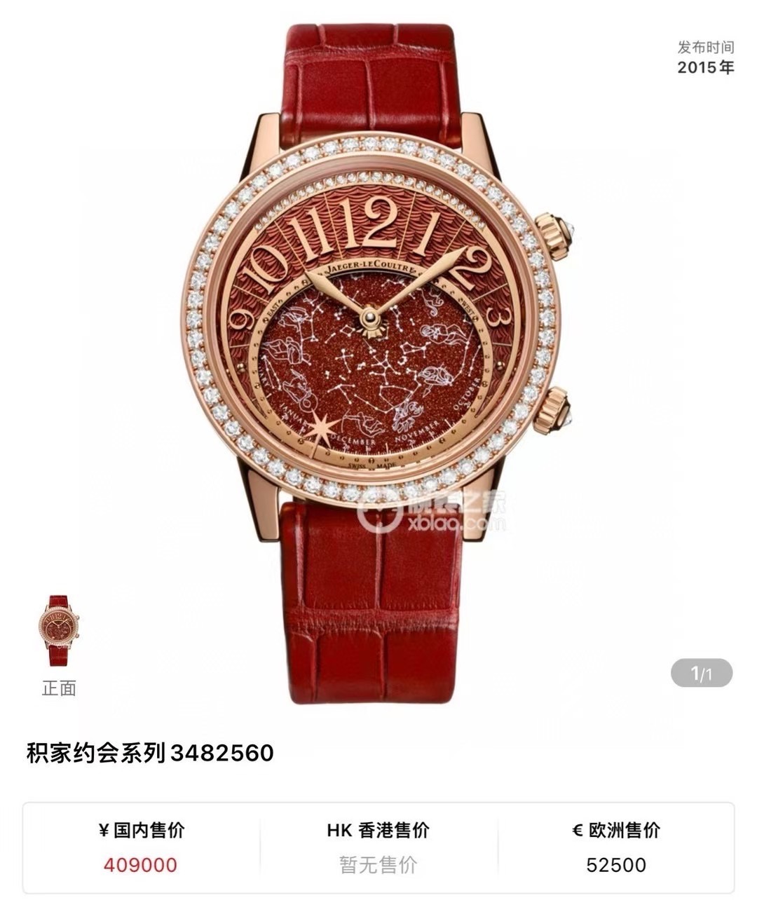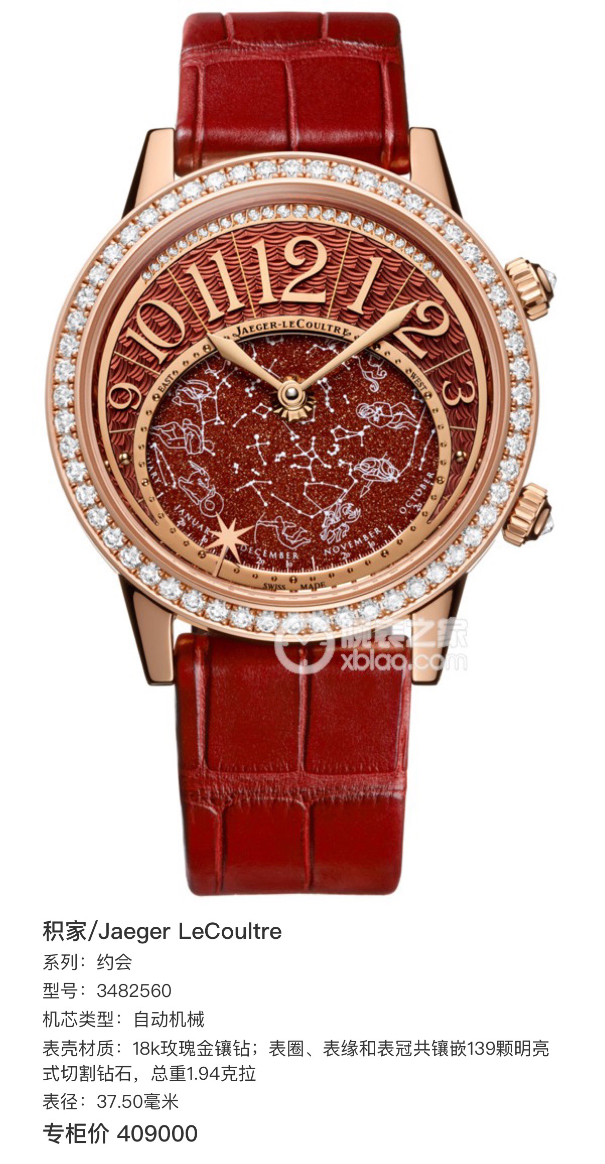 积家约会系列 型号3482560 自动机械 女士手表 表径 37.5mm 材质 18k玫瑰金全套。