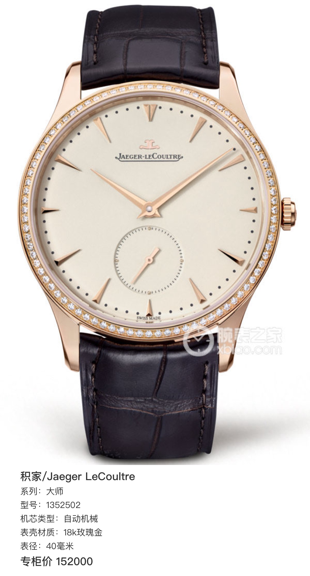 积家大师系列1352502腕表 大师 1352502 40毫米表径 自动机械 原钻