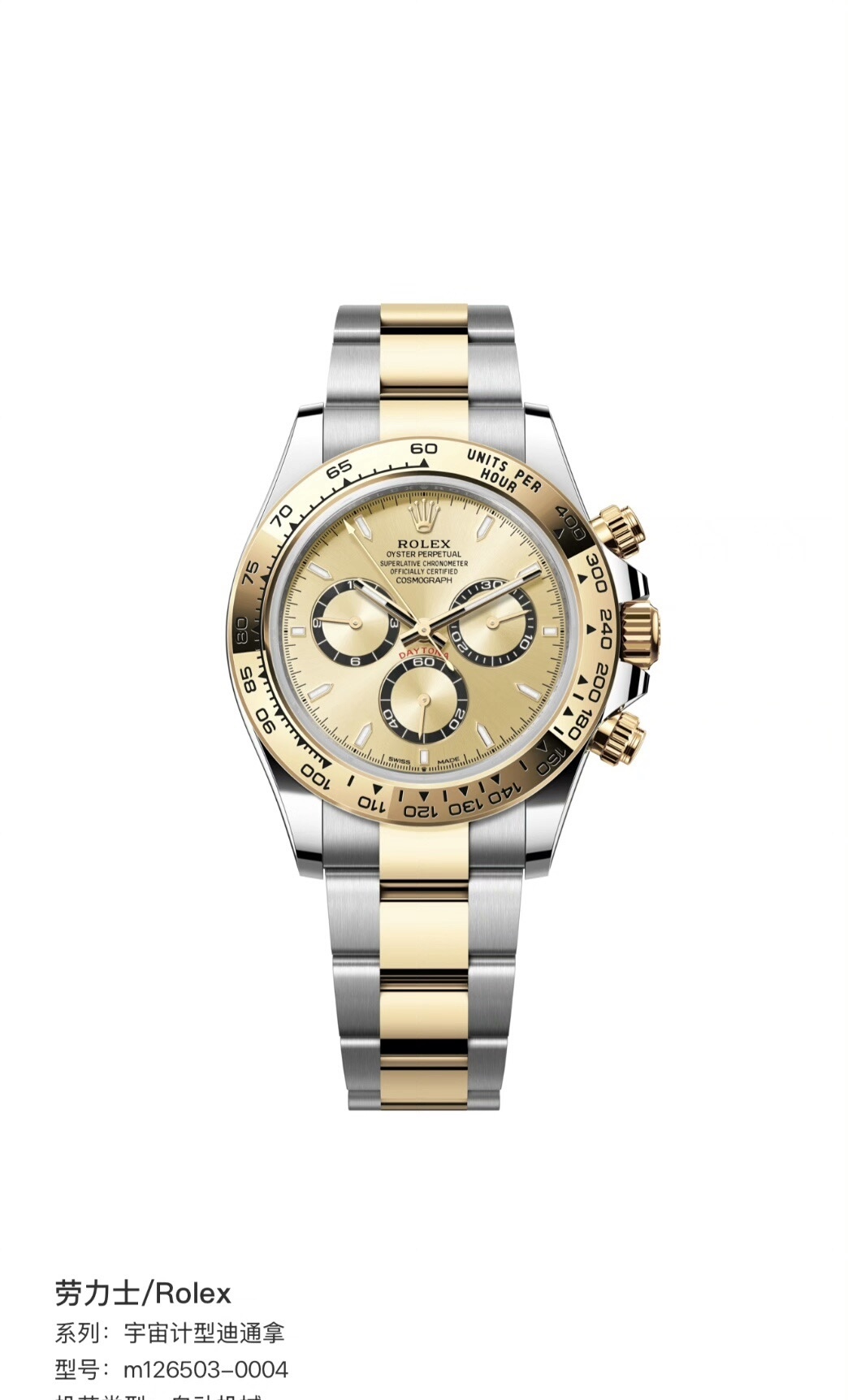 劳力士宇宙计型迪通拿 香槟间金迪 M126503-0004机械男性