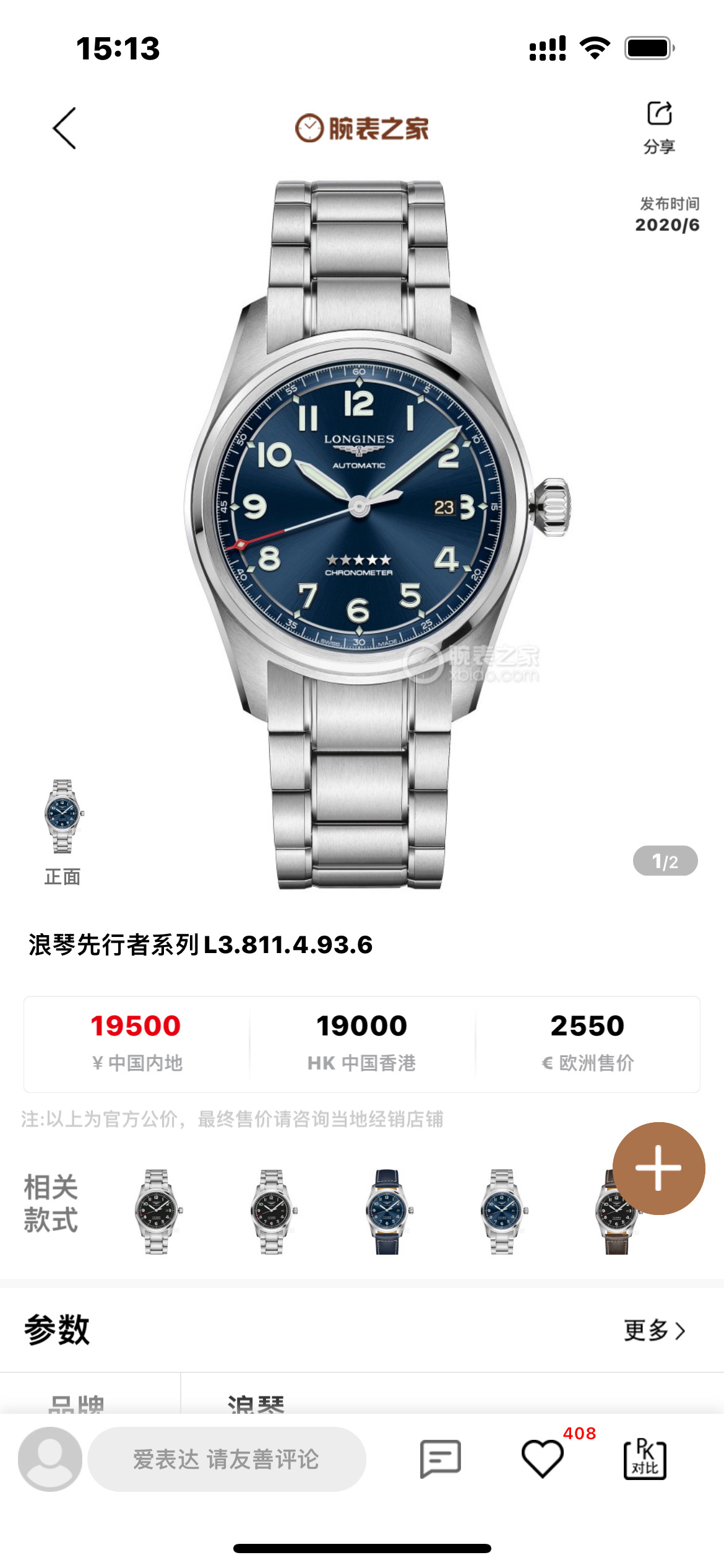 浪琴/Longines 先行者系列 L3.811.4.93.6 自动上链机械机芯 精钢材质,尺寸42.00mm 专柜价19500,国行保卡,全新未使用!