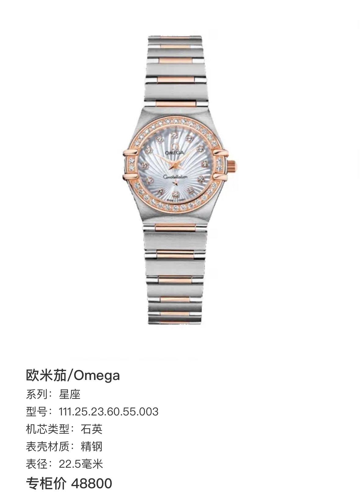 石英 精钢 22.5毫米 专柜价48800