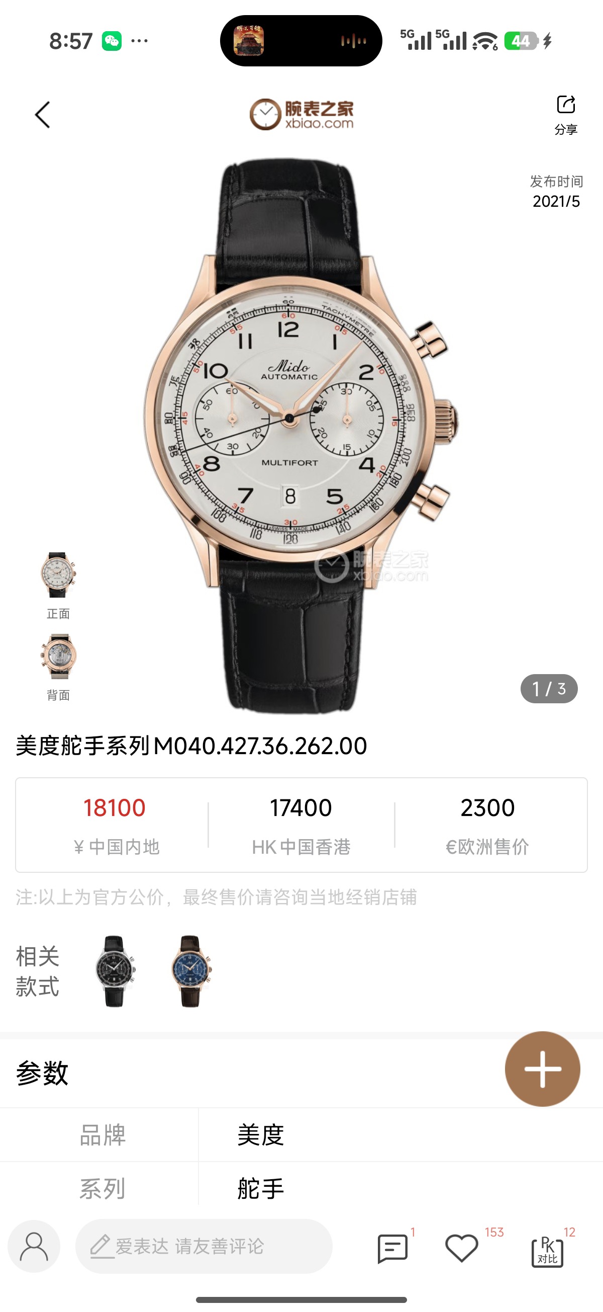 美度舵手 MULTIFORTM040.427.36.262.00机械男性