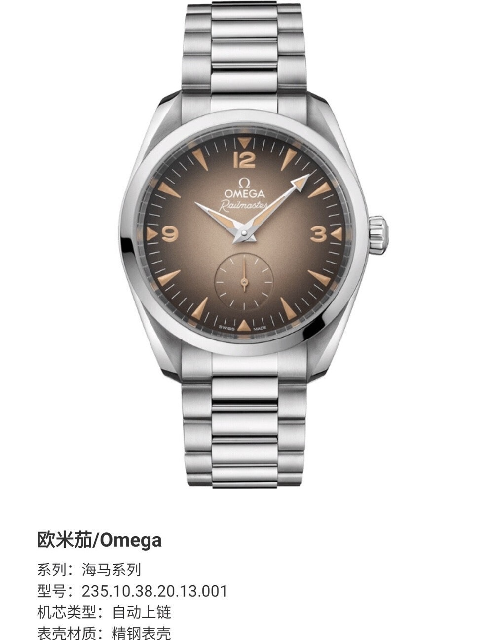 欧米茄海马235.10.38.20.13.001机械中性