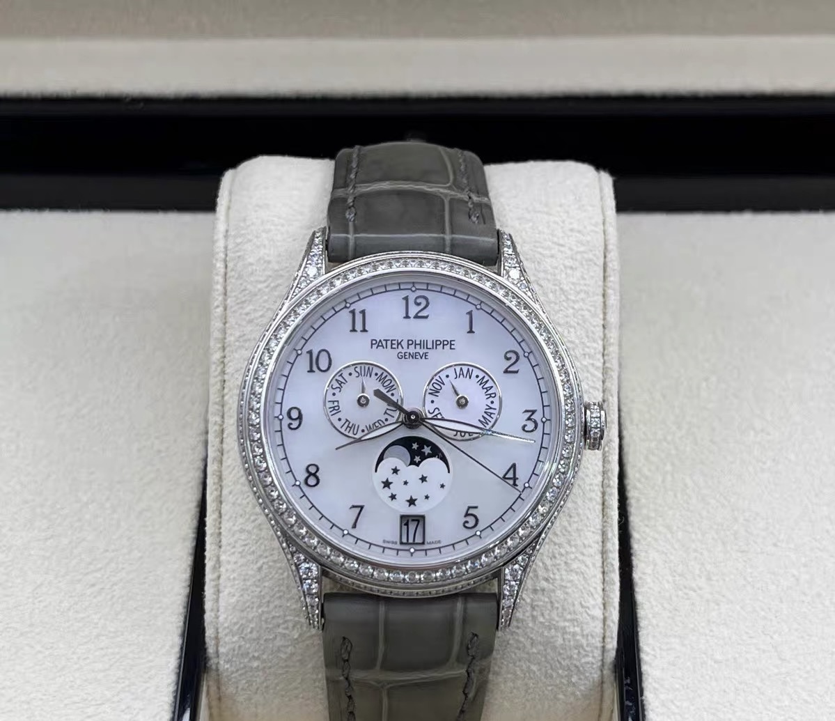 38mm表径,18k白金镶钻,日期 星期 月份 月相