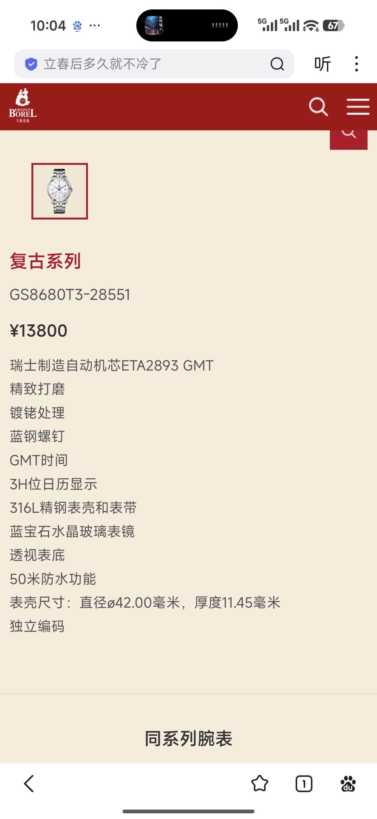 GMT时间 3H位日历显示 316L精钢表壳和表带