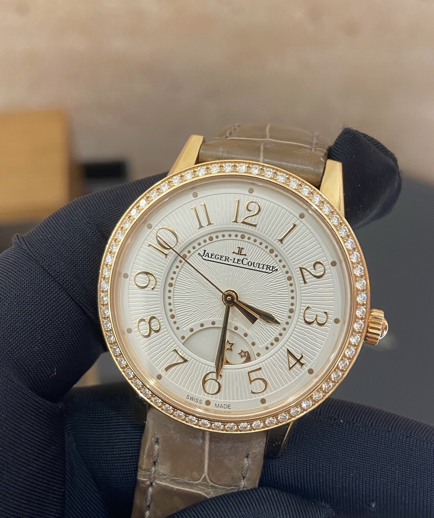 34mm表径,18k玫瑰金镶钻,阿拉伯数字时标