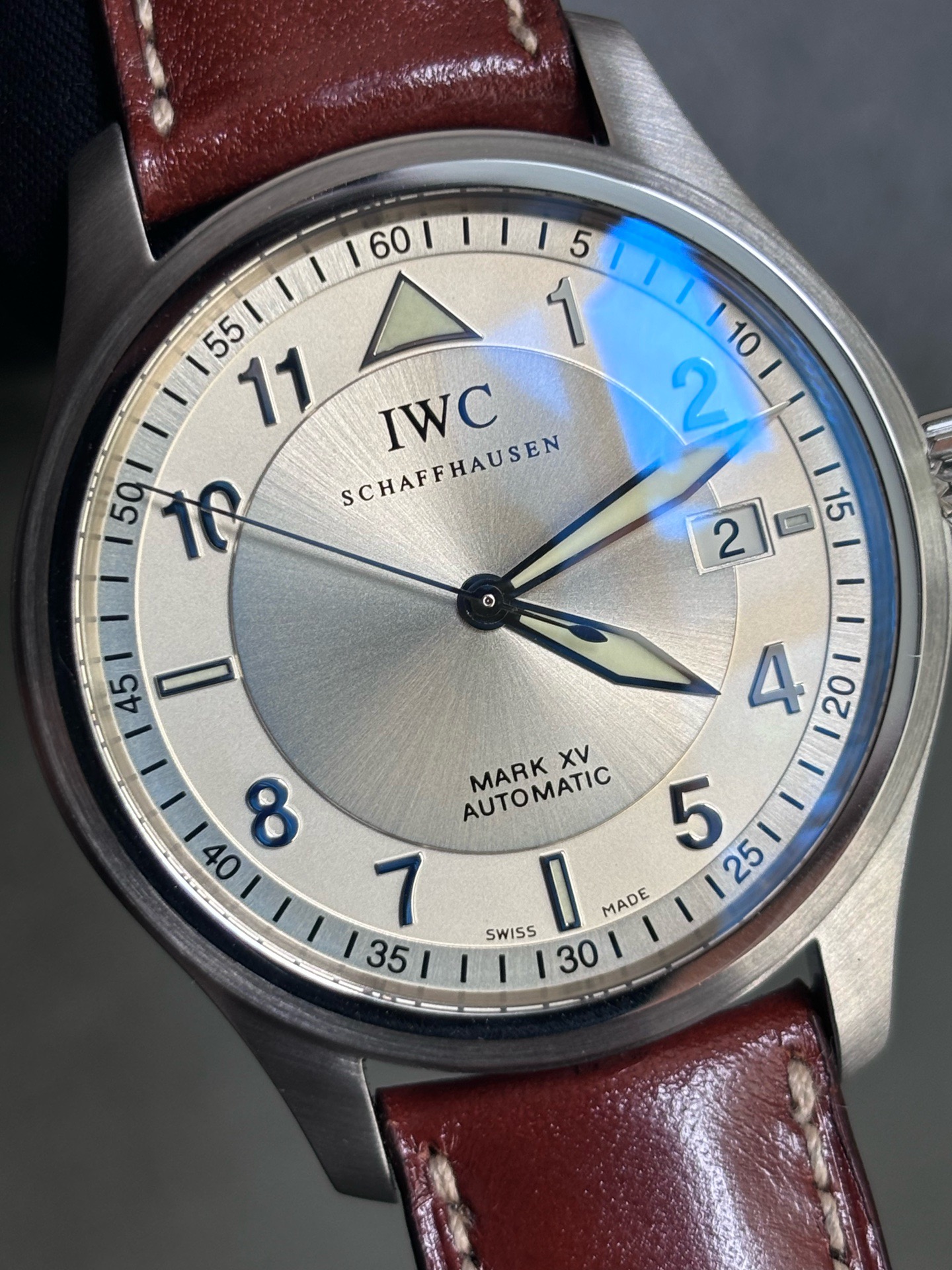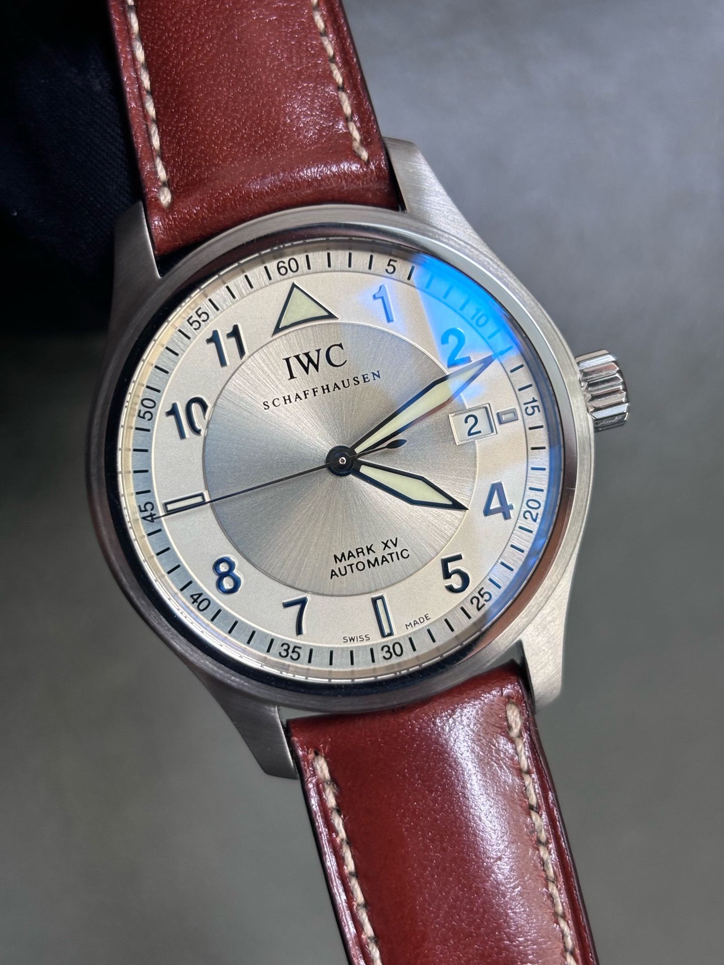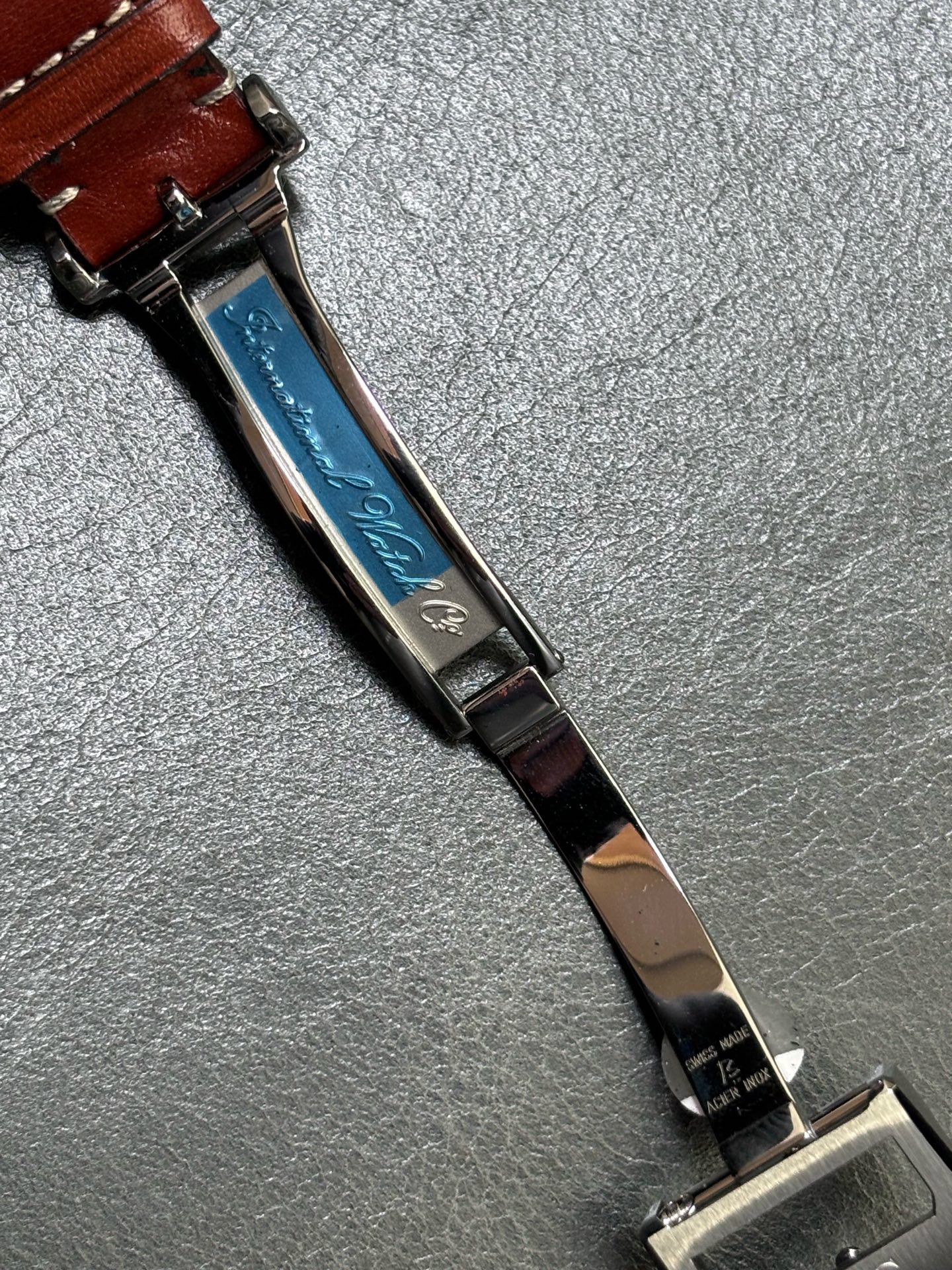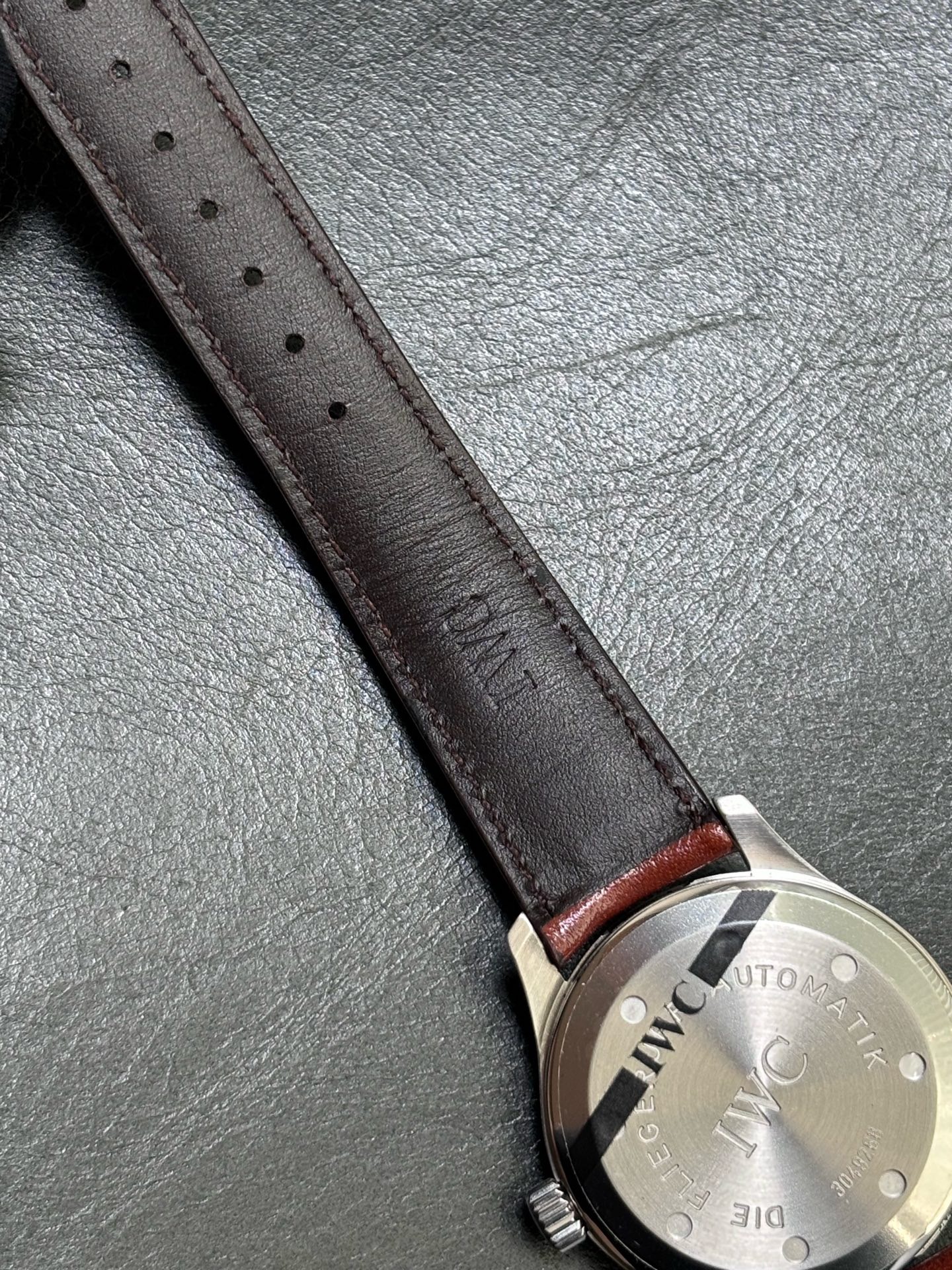 【全新全套】【罕见藏品】万国飞行员 马克15 38表径 旋入式鱼形把头,自动机械 ,折叠扣 !