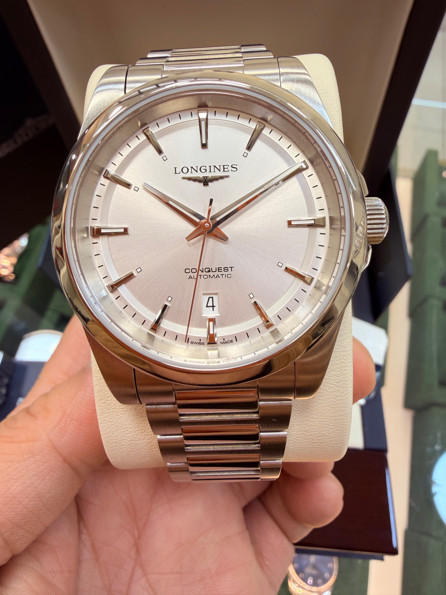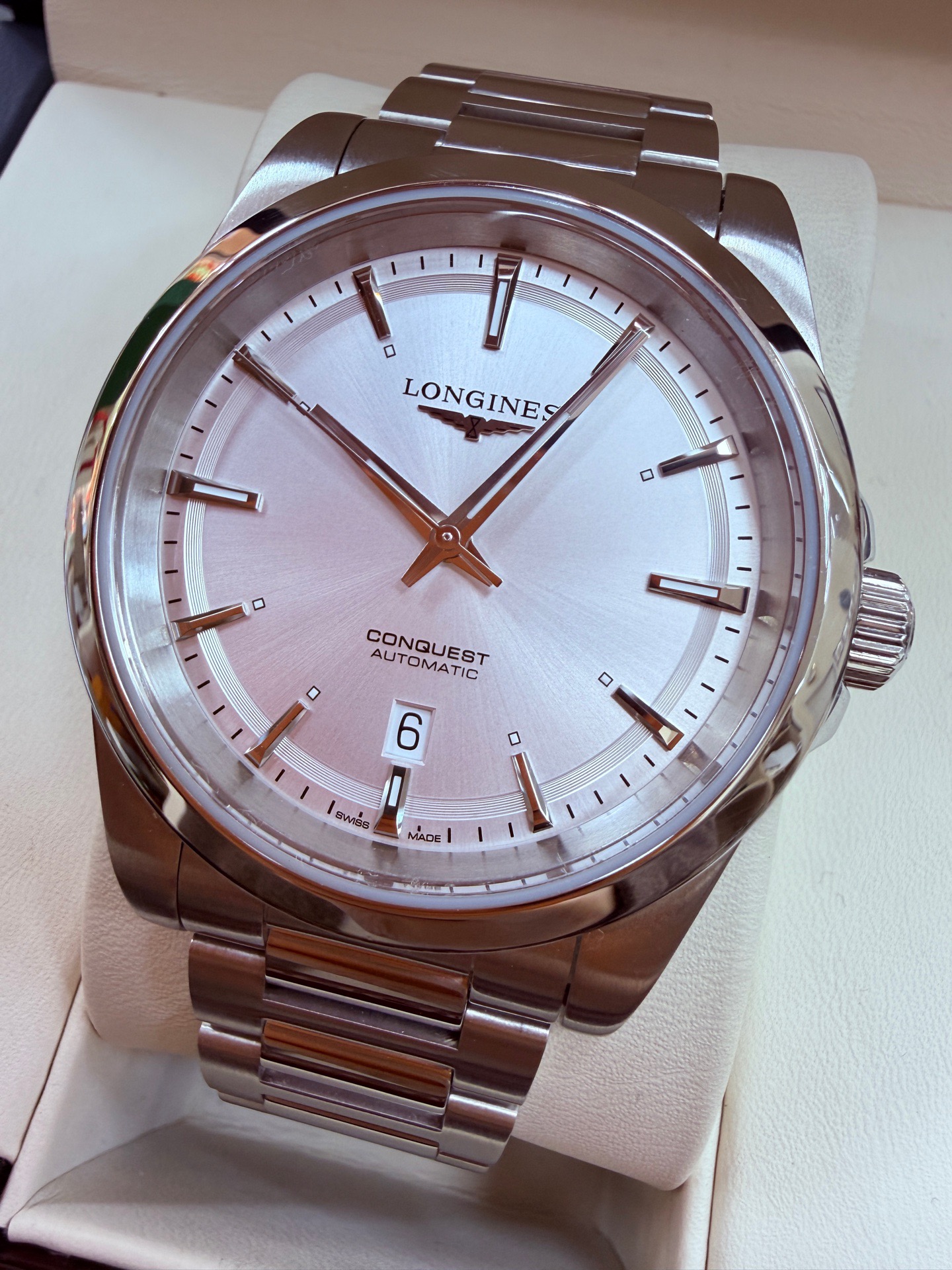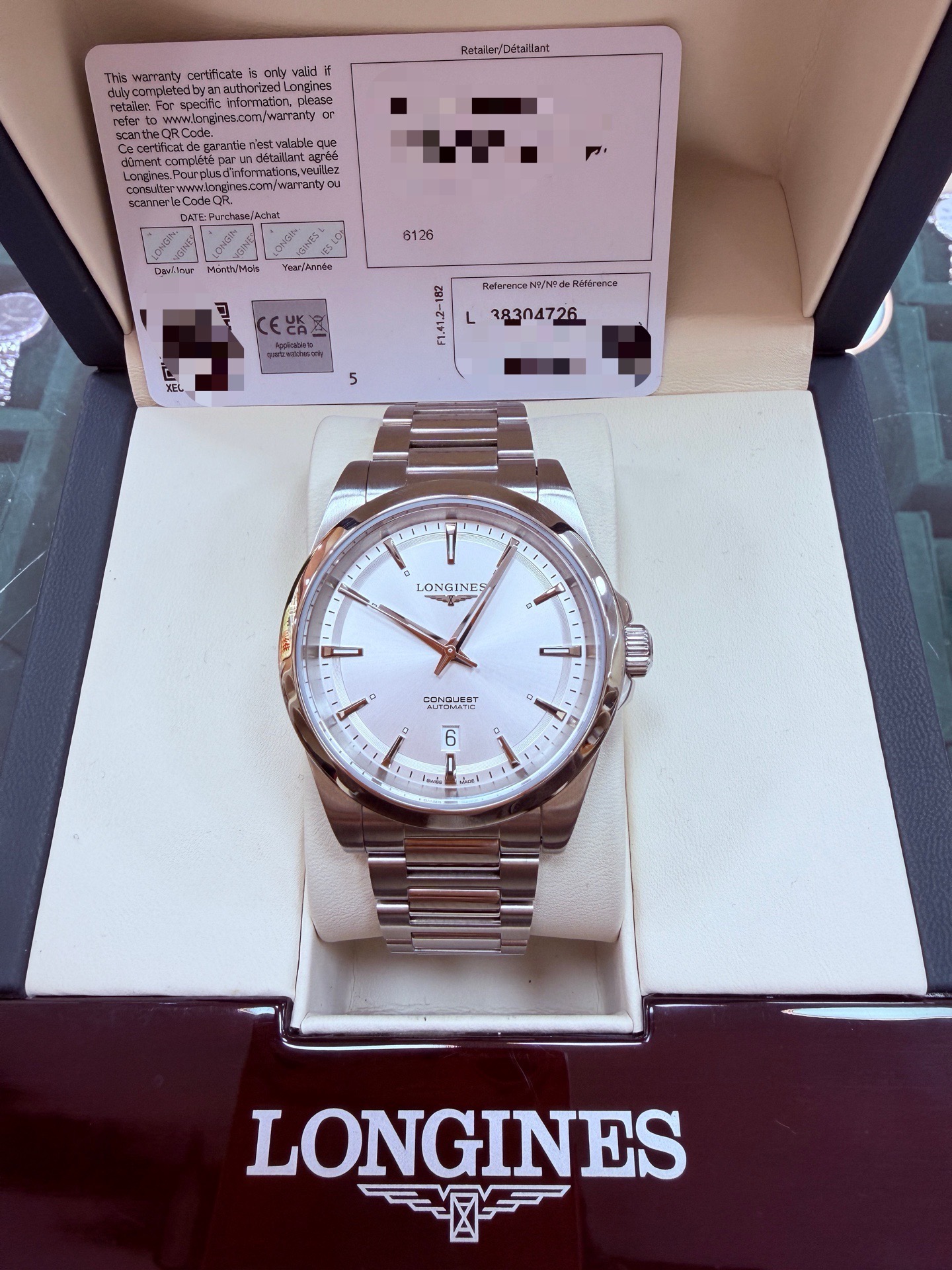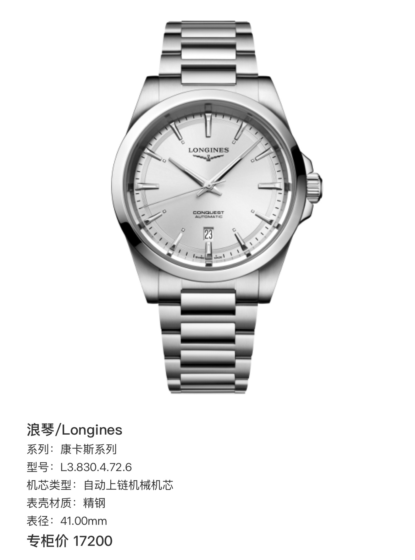 浪琴/Longines 康卡斯系列 L3.830.4.72.6 自动上链机械机芯 精钢 41.00mm 专柜价17200,如图极品漂亮 白盘全套 空白卡 好价。