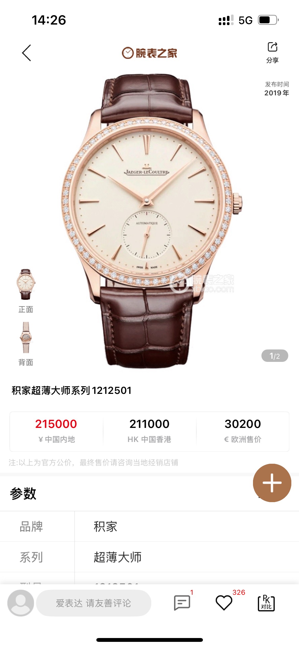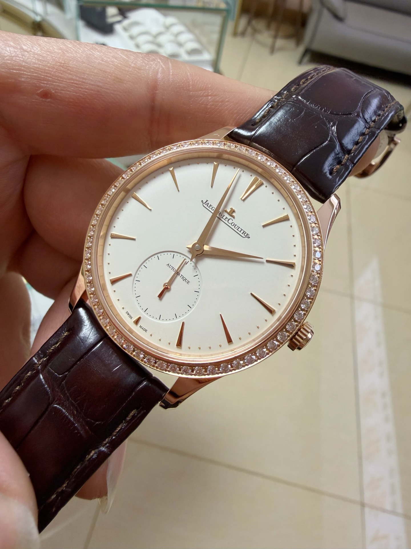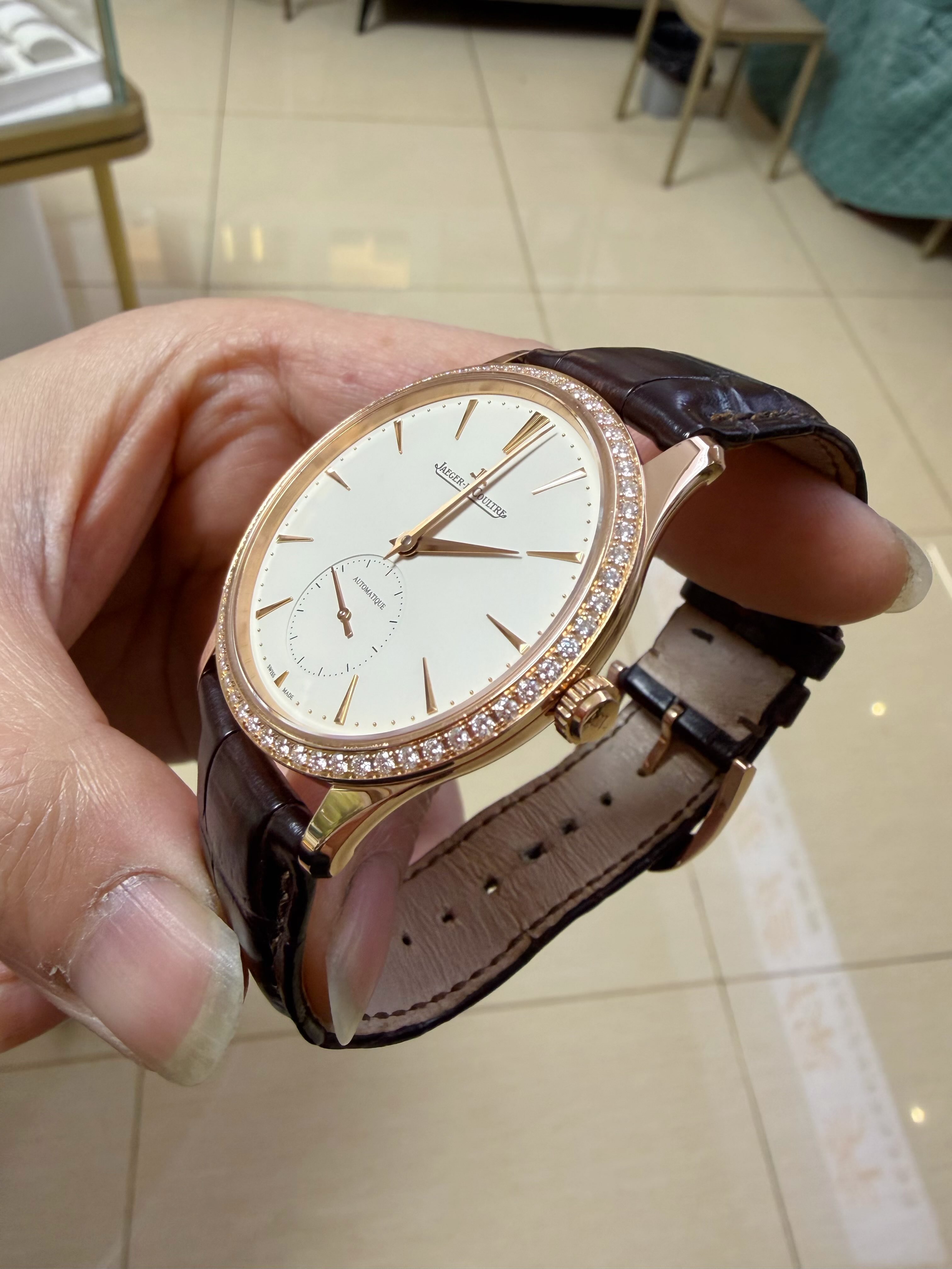 全套,积家/Jaeger LeCoultre 大师 1212501 自动机械 18k玫瑰金 39毫米 专柜价215000