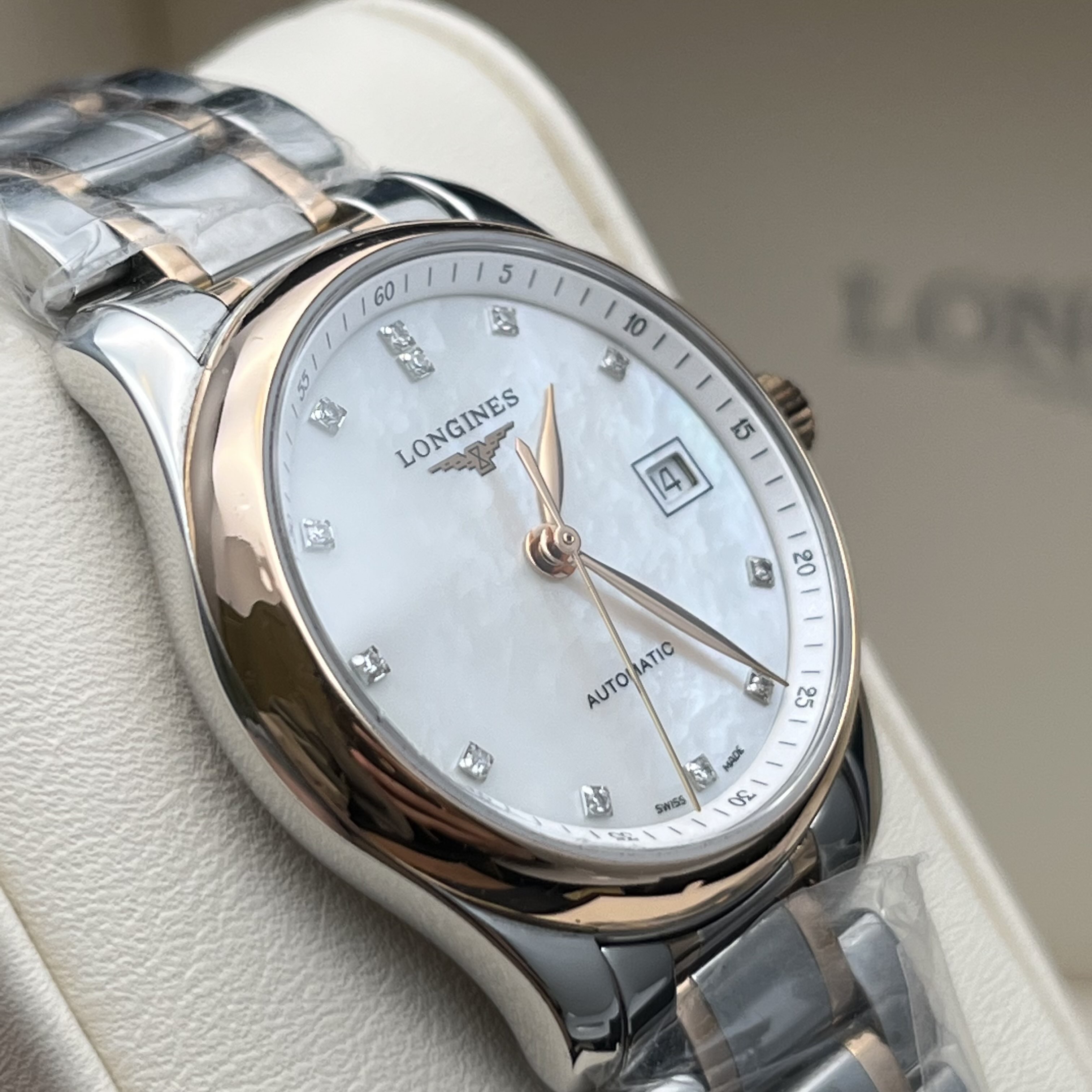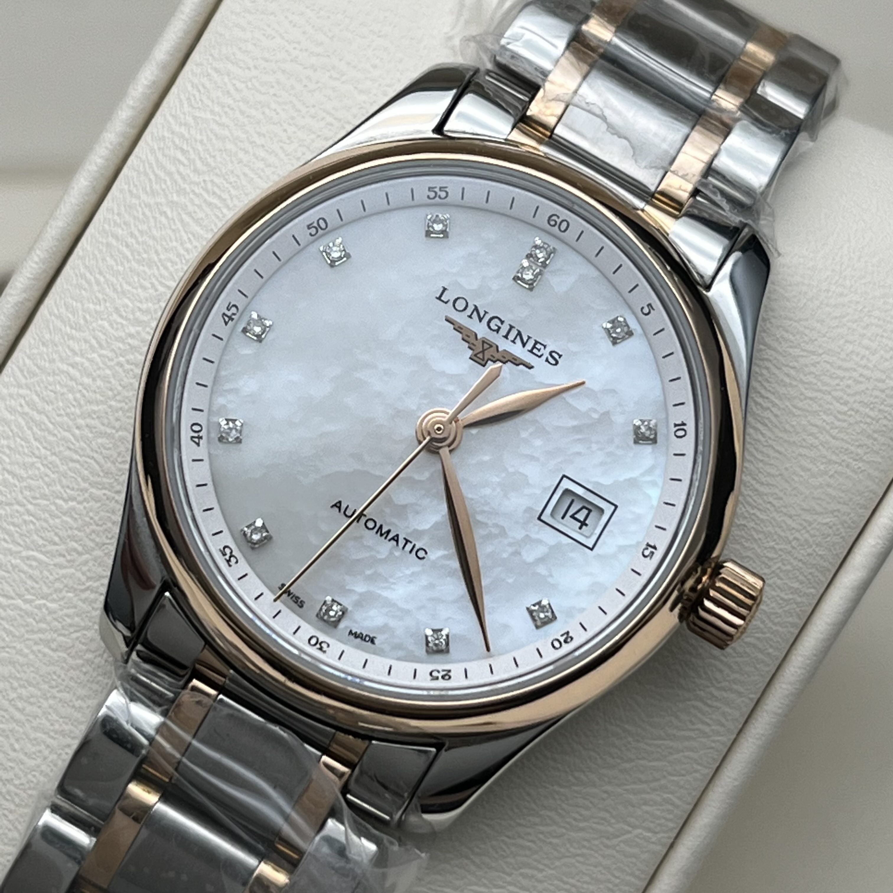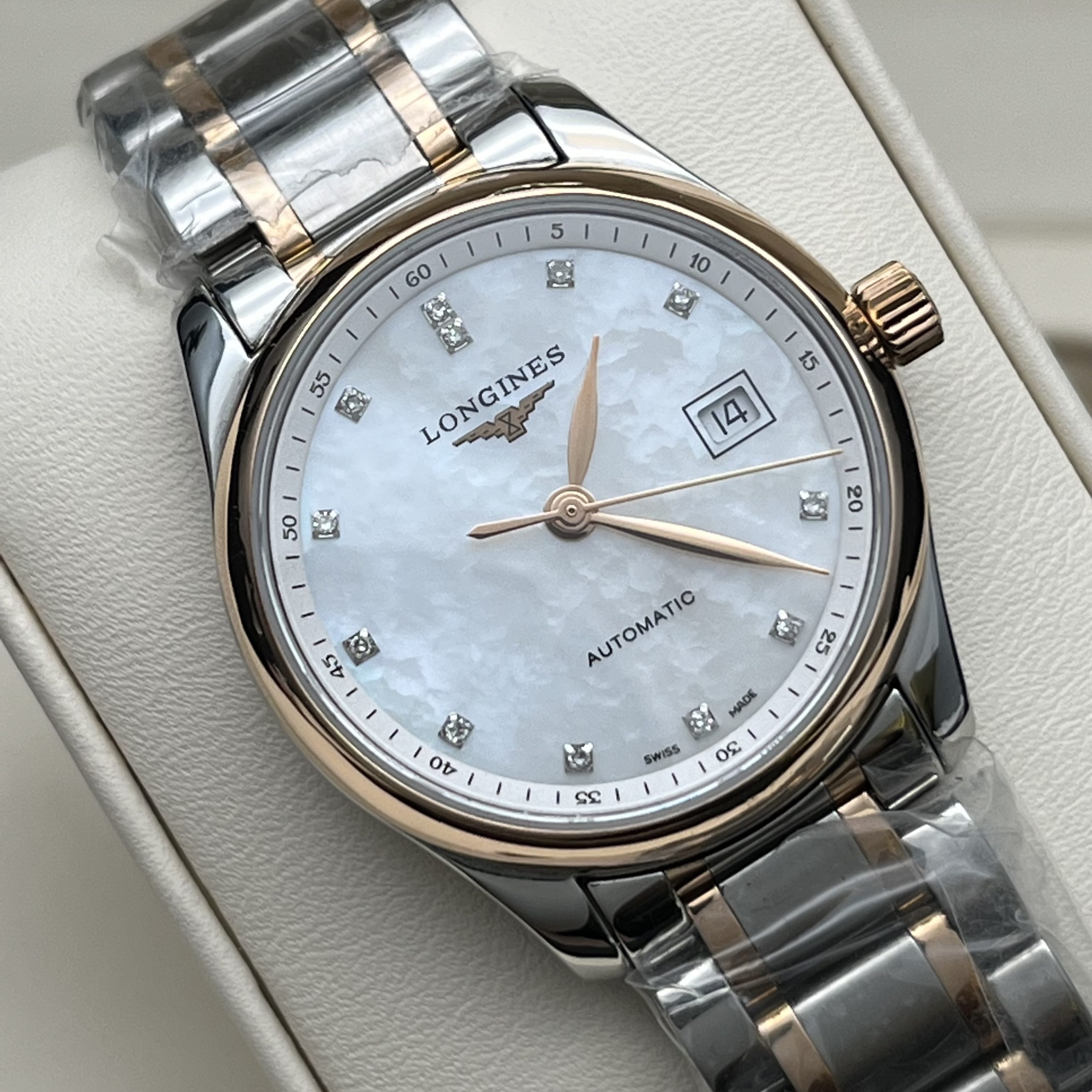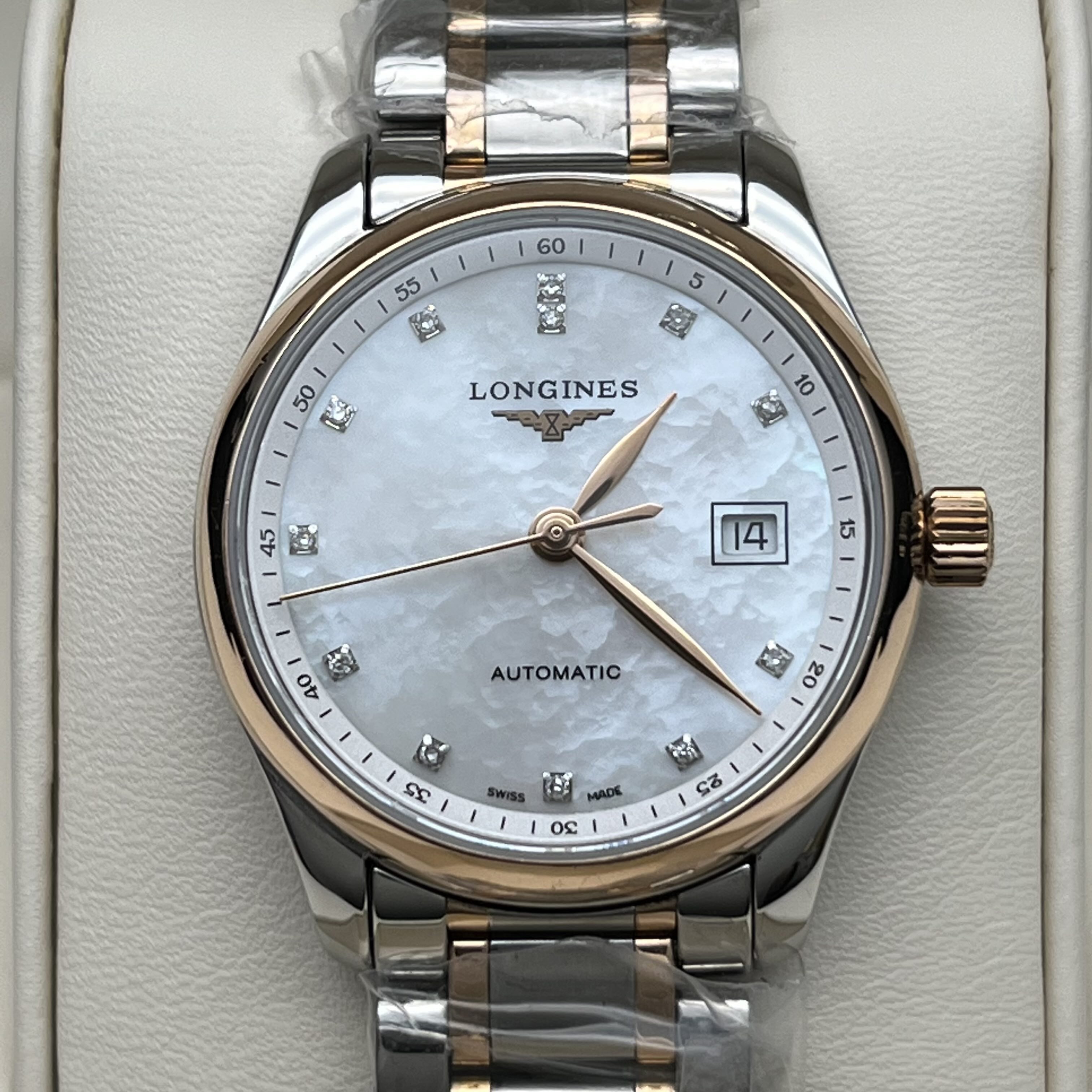 浪琴/Longines 浪琴表名匠系列 L2.257.5.89.7 自动上链机械机芯 精钢表壳/200微米 18K包金玫瑰金表圈 29.00mm 专柜价29200。