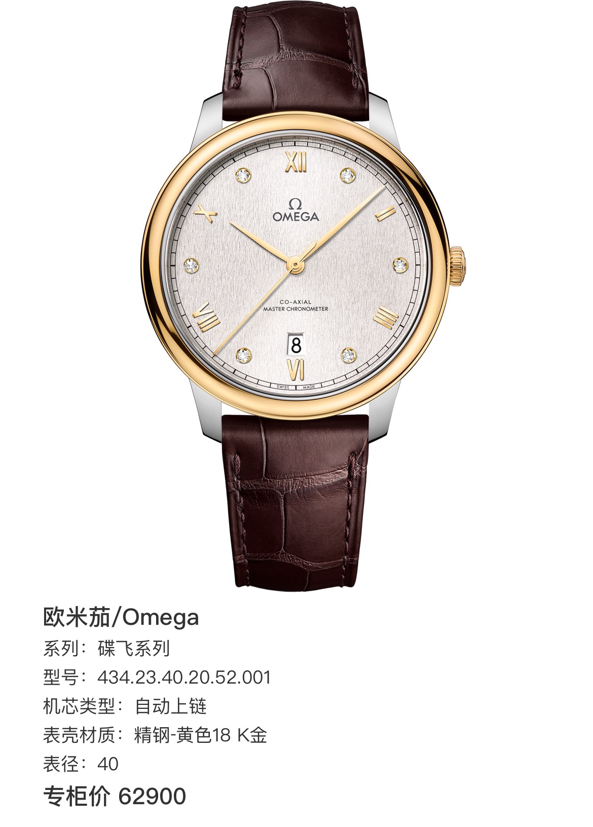 欧米茄/Omega 碟飞系列 434.23.40.20.52.001 自动上链 精钢‑黄色18 K金 40mm表径 专柜价62900 25年全新全套