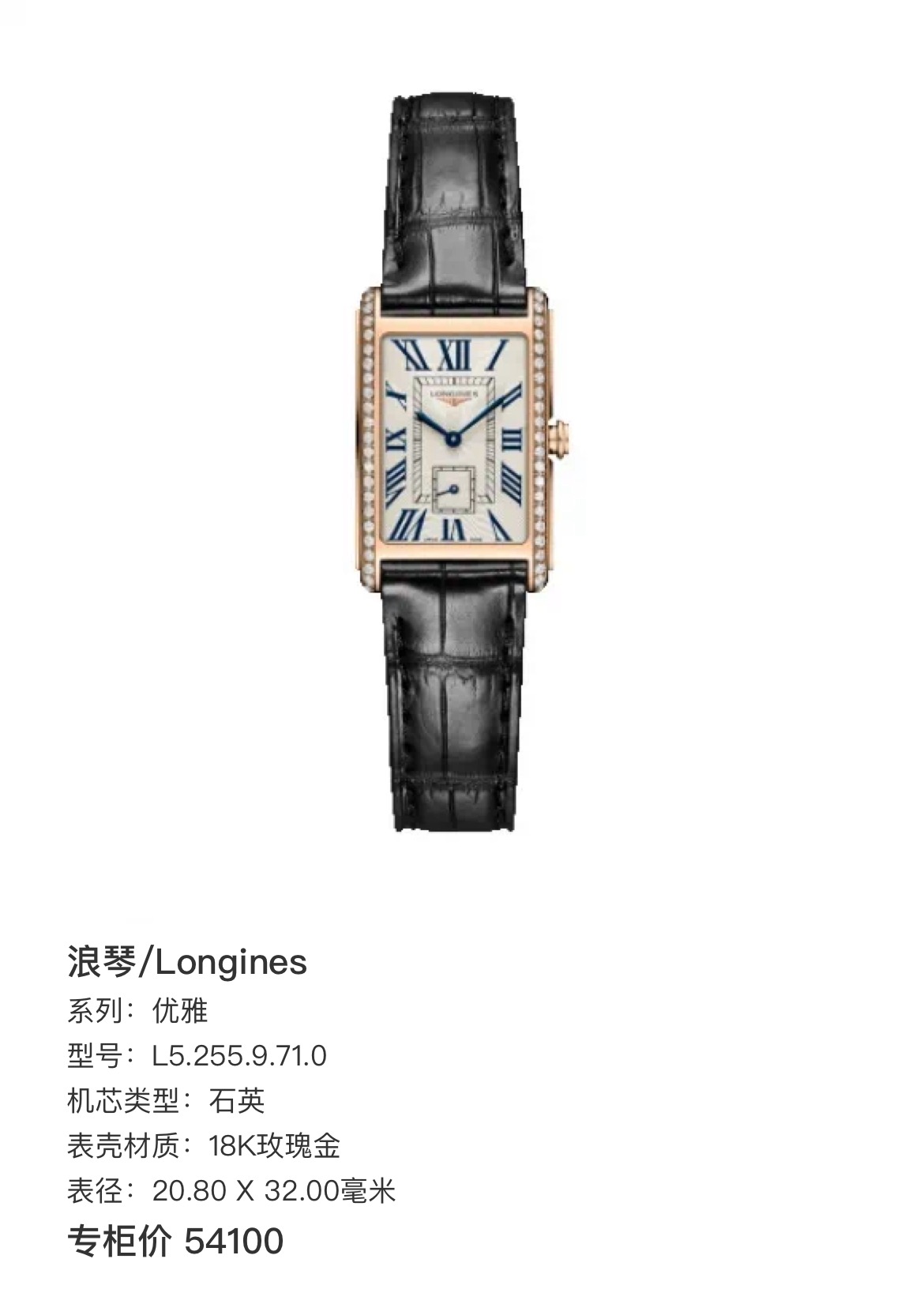 浪琴/Longines 优雅 L5.255.9.71.0 石英 18K玫瑰金 20.80 X 32.00mm表径 单表 无附件 好价得 专柜价54100