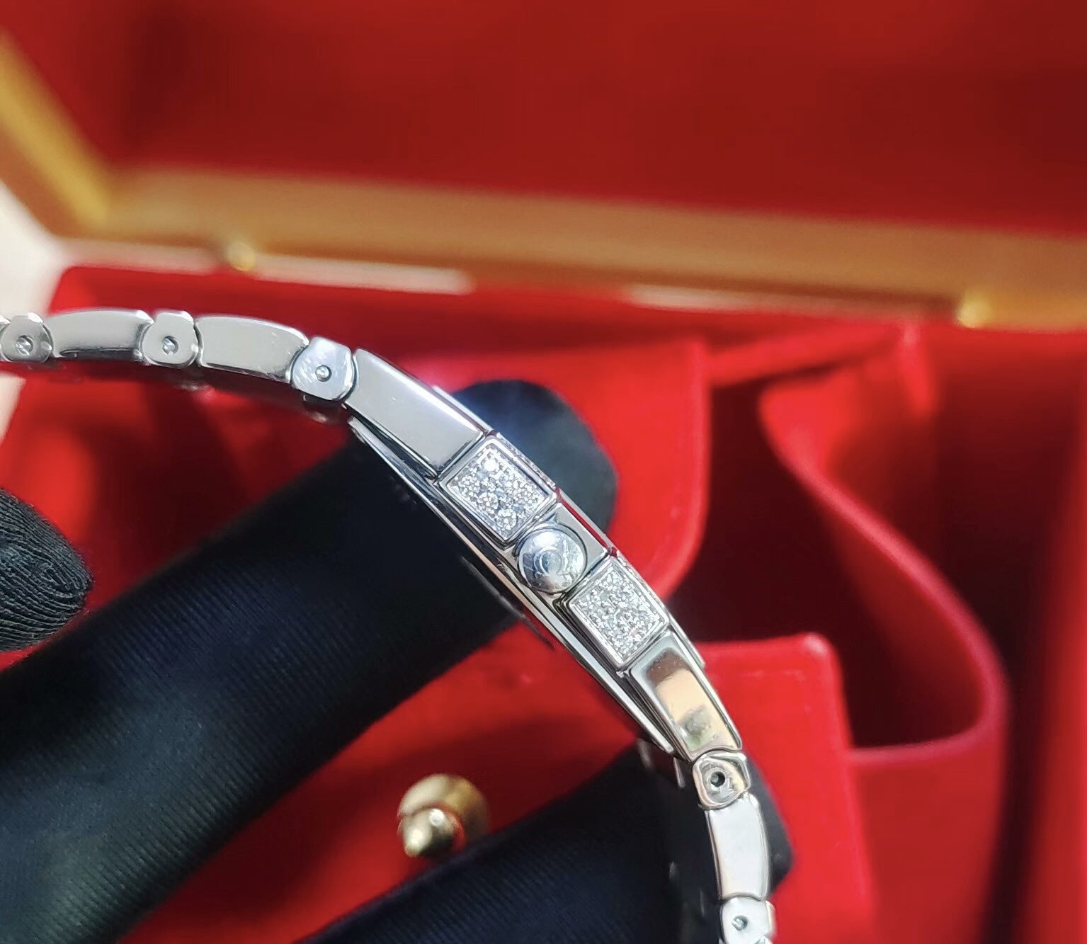 精钢材质,珍珠贝母表盘,罗马数字时标