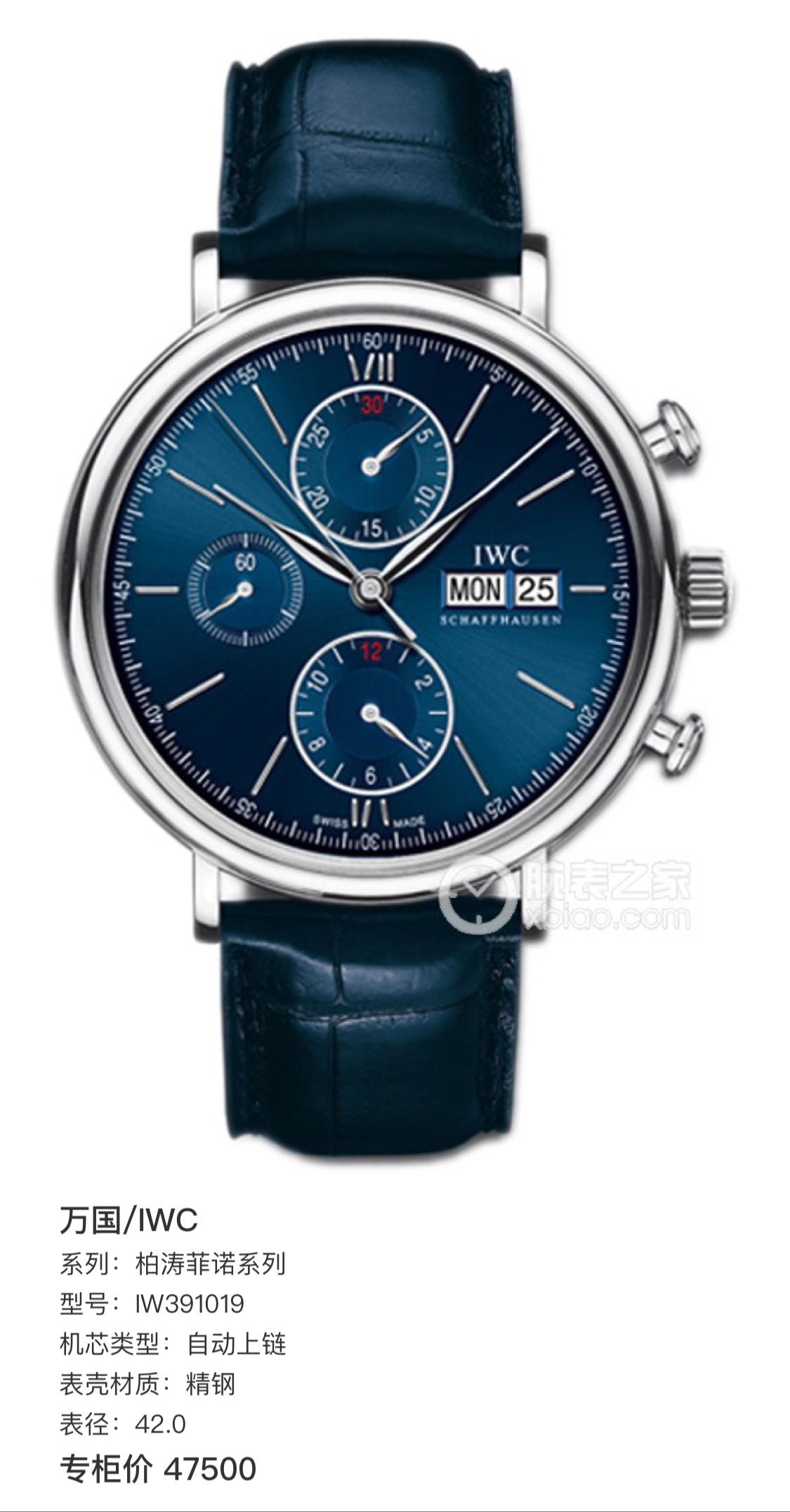 万国/IWC 柏涛菲诺系列 劳伦斯限量2500块 IW391019 自动上链 精钢 42毫米 附件:全套 专柜价47500。