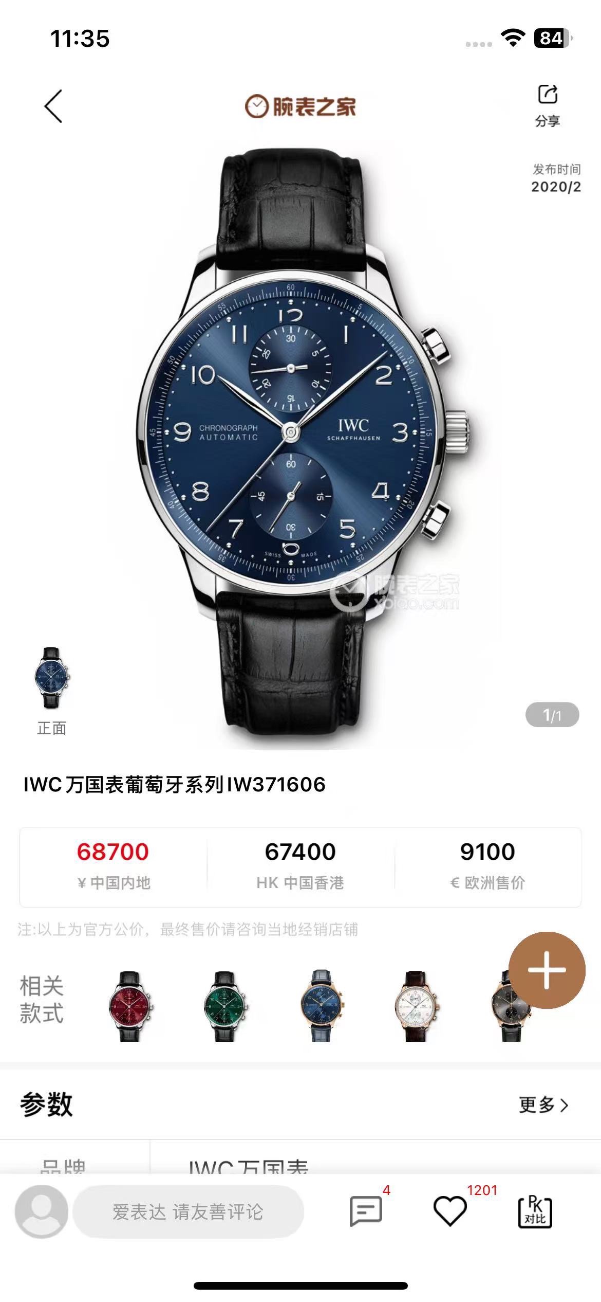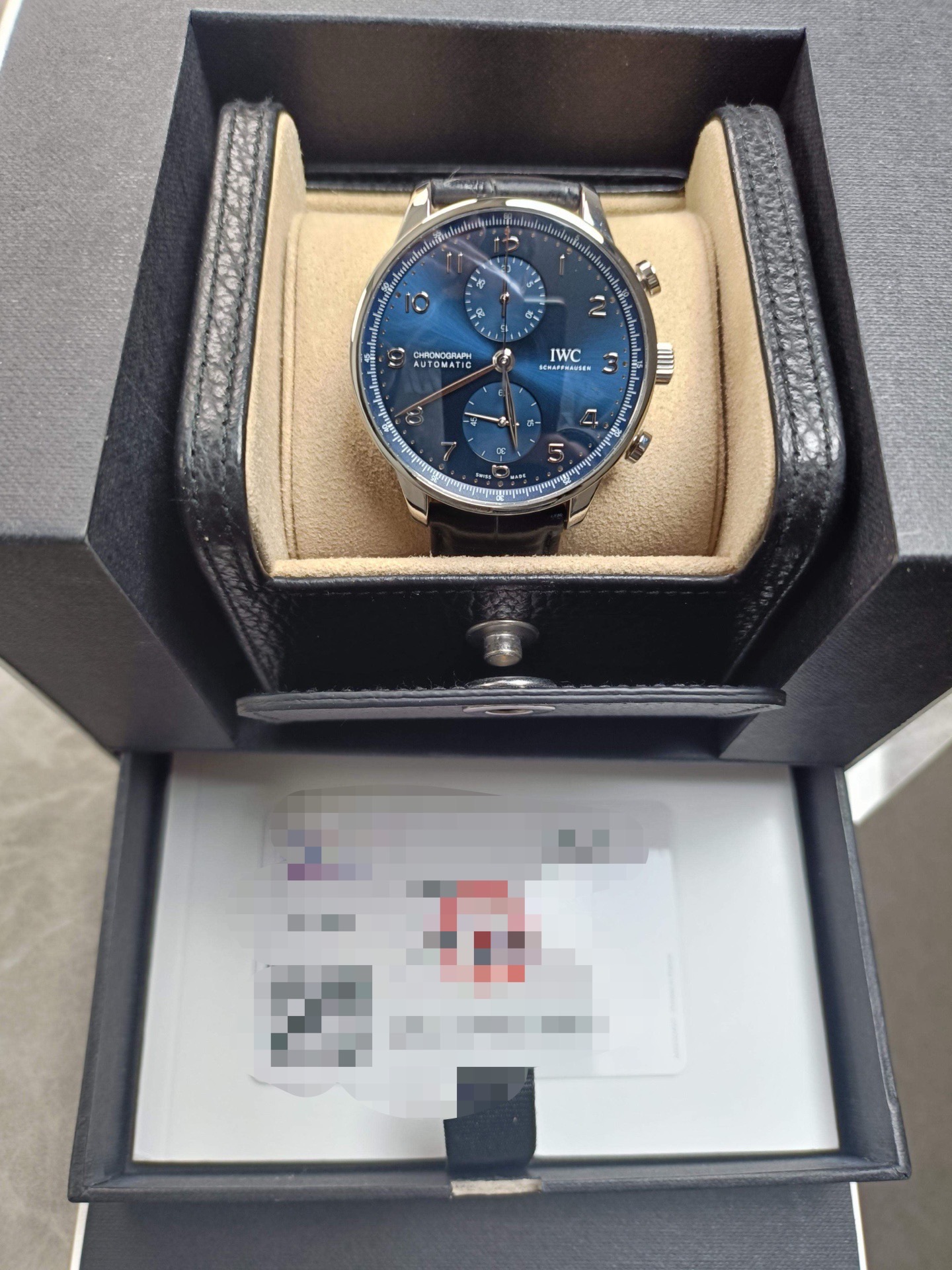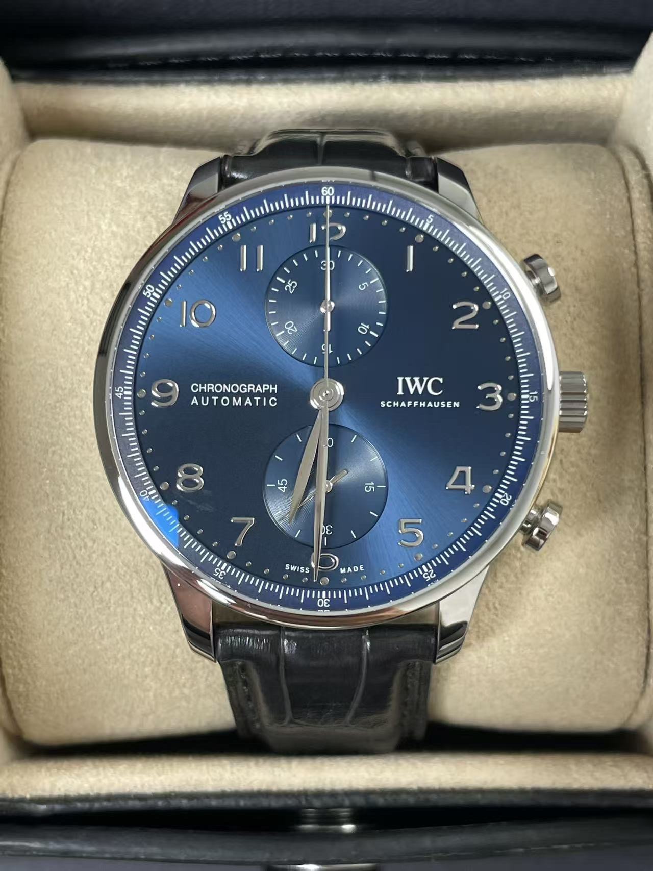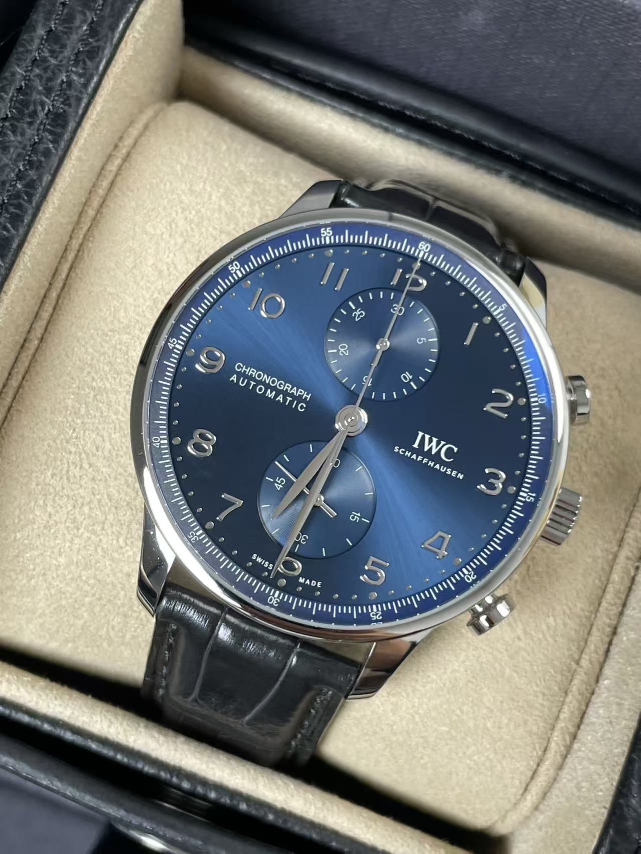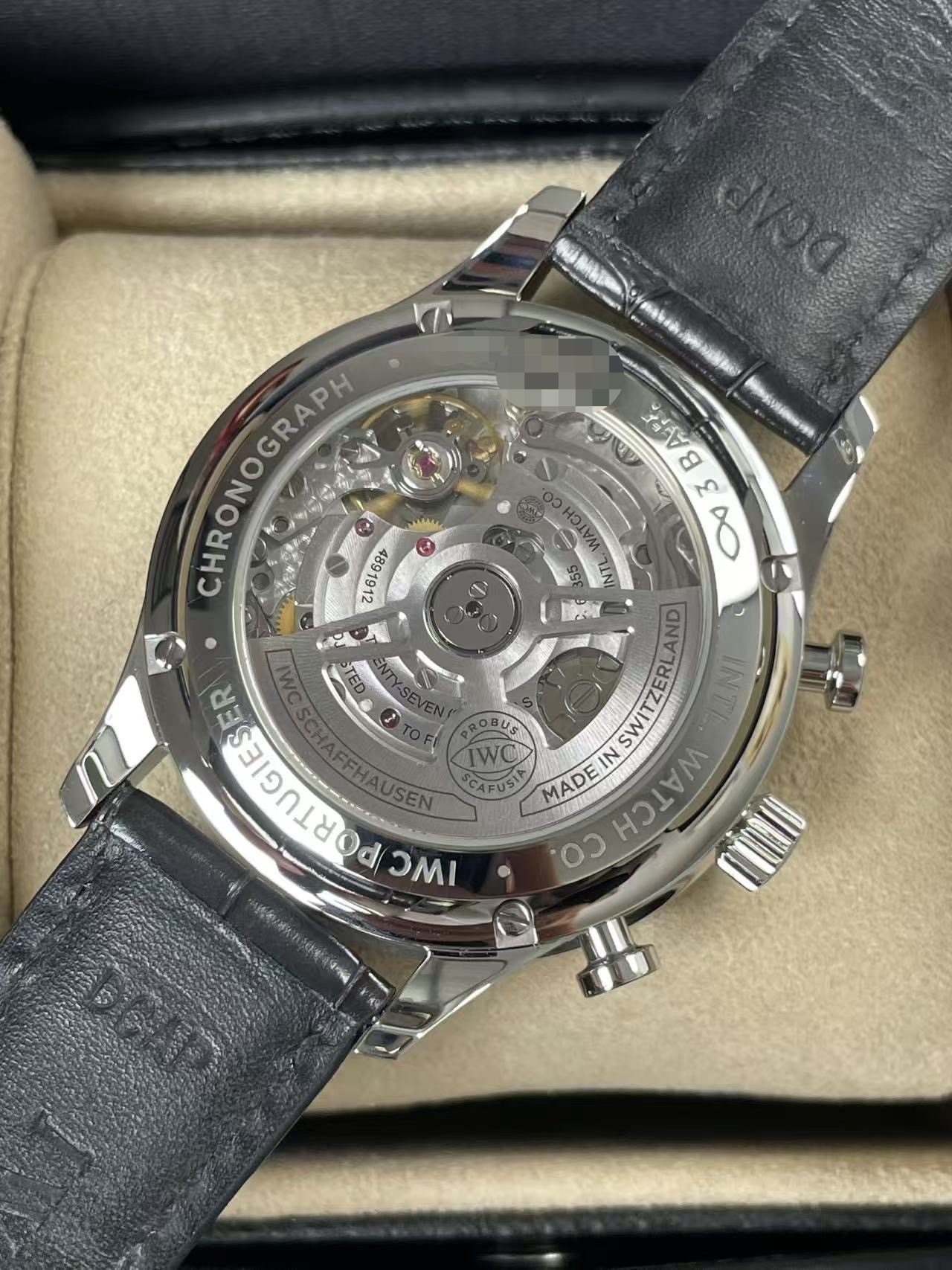 万国葡萄牙系列 IW371606 蓝盘葡计 41表径 背透设计 自动机械 精钢材质 三冠双眼带计时 专柜价68700