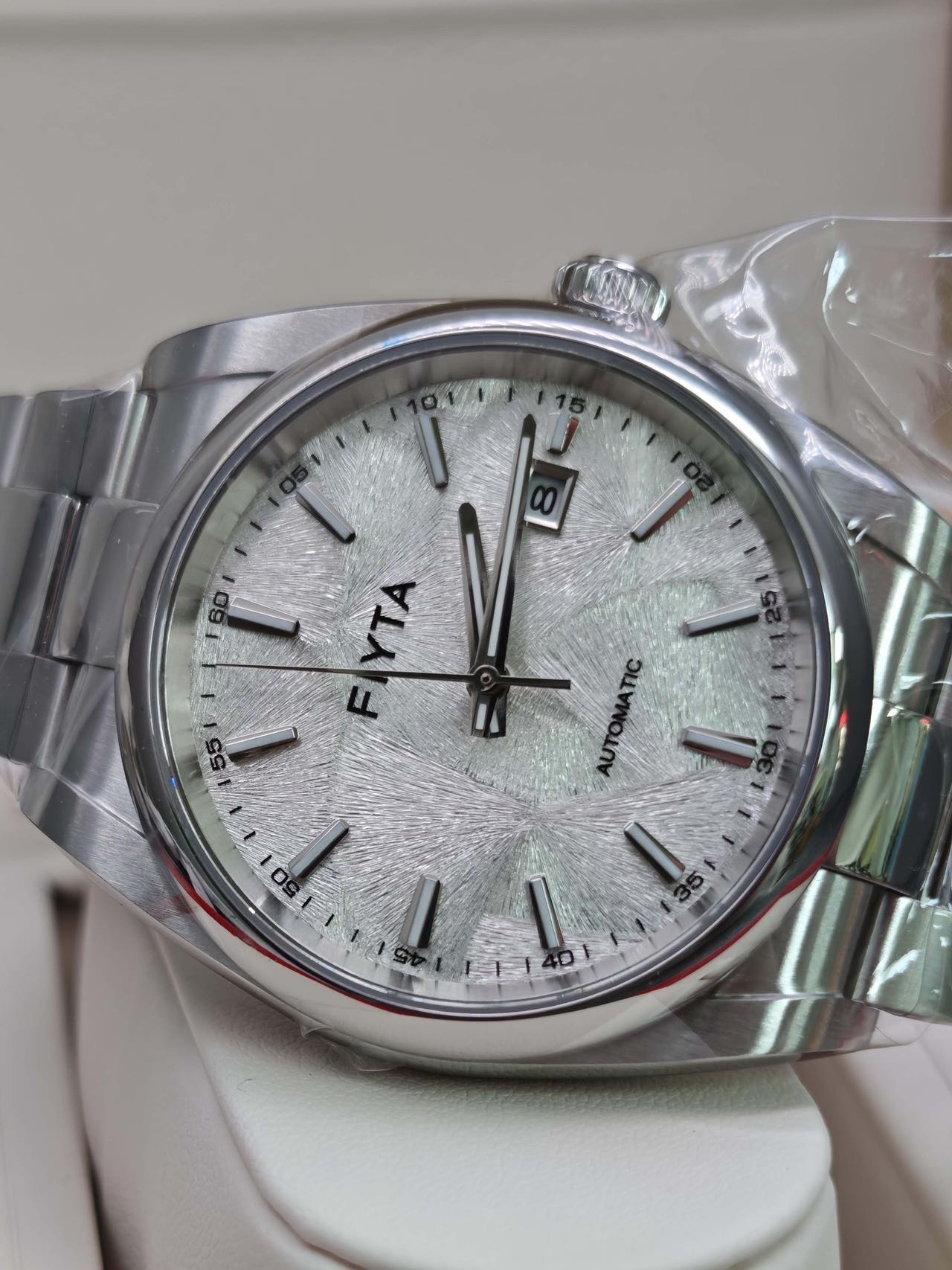 飞亚达“中国银杏”锲金款,霜月银色表盘,40mm表径,10.95mm厚度,搭载西铁城8215自动机械机芯,表盘母版来自于锲金非遗大师张春玲,再用飞亚达的“鎏金微铸”工艺在搪瓷质感表盘复现,呈现光亮纵横交错的纹理,犹如层层叠叠的银杏叶。很亮丽的银白色,很适合作为新年礼物。