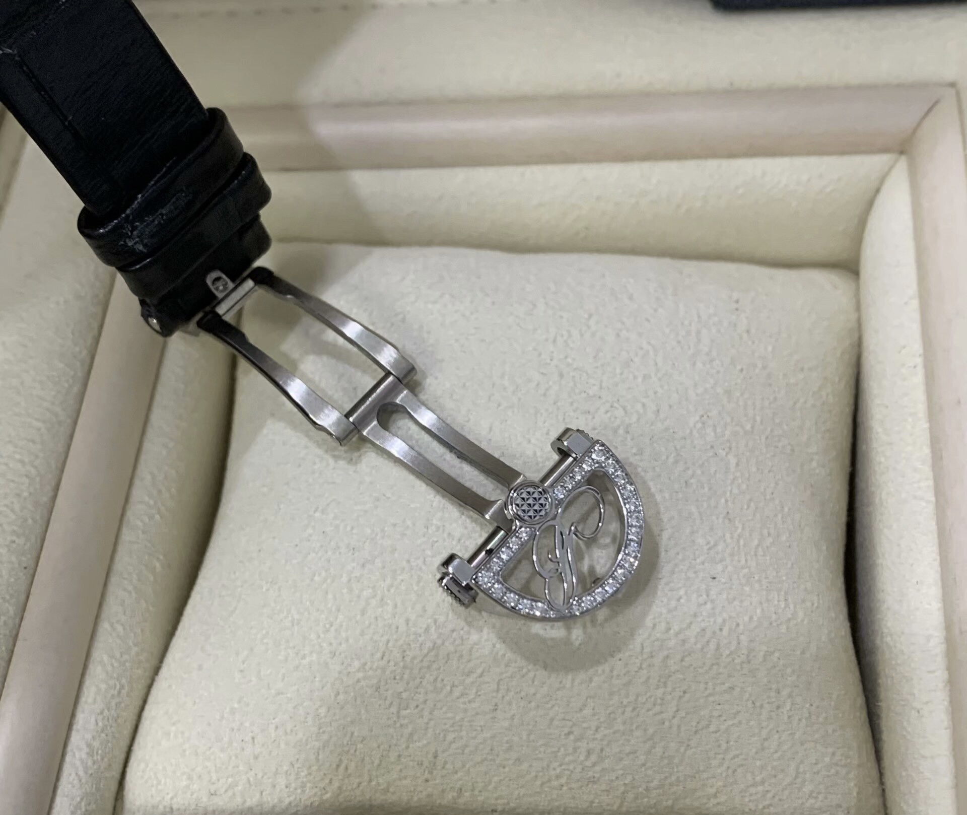 36×28mm表径,18k白金镶钻母贝盘