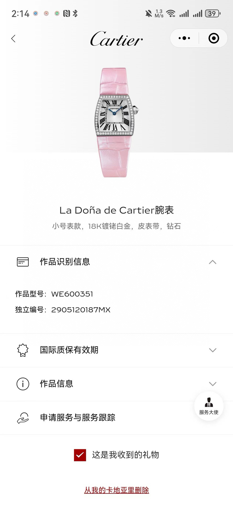 卡地亚鳄鱼系列型号WE600351白金钻石手表,