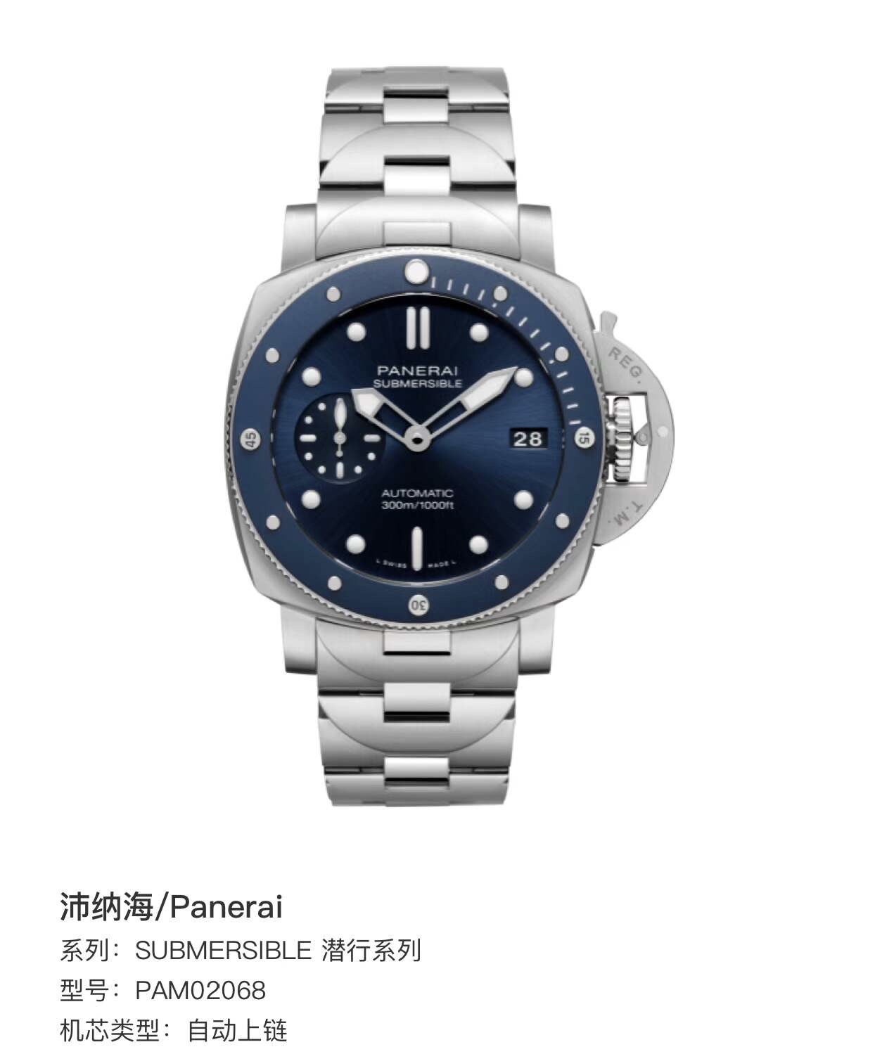 沛纳海Submersible潜行PAM02068机械男性