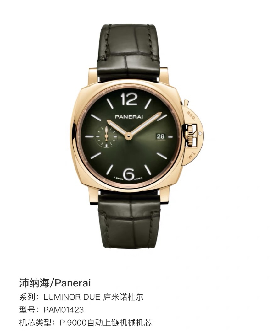 沛纳海Luminor Due庐米诺杜尔PAM01423机械男性