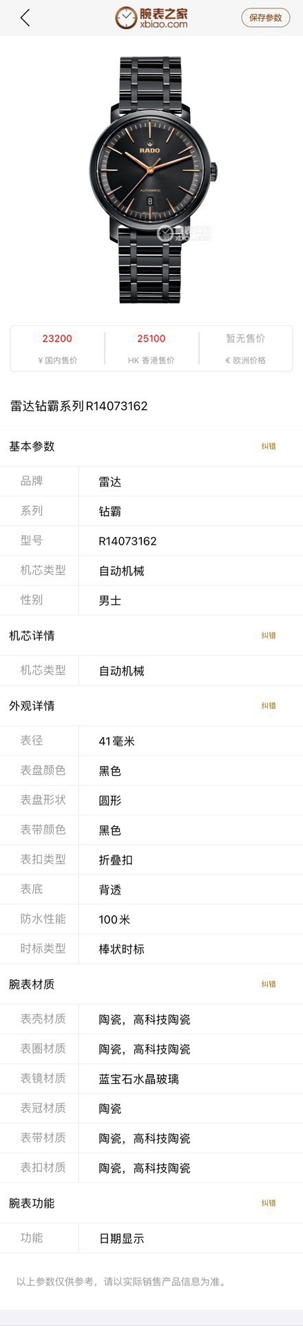 机芯类型:自动机械 41mm 男士腕表公价23200。2B12480LZ