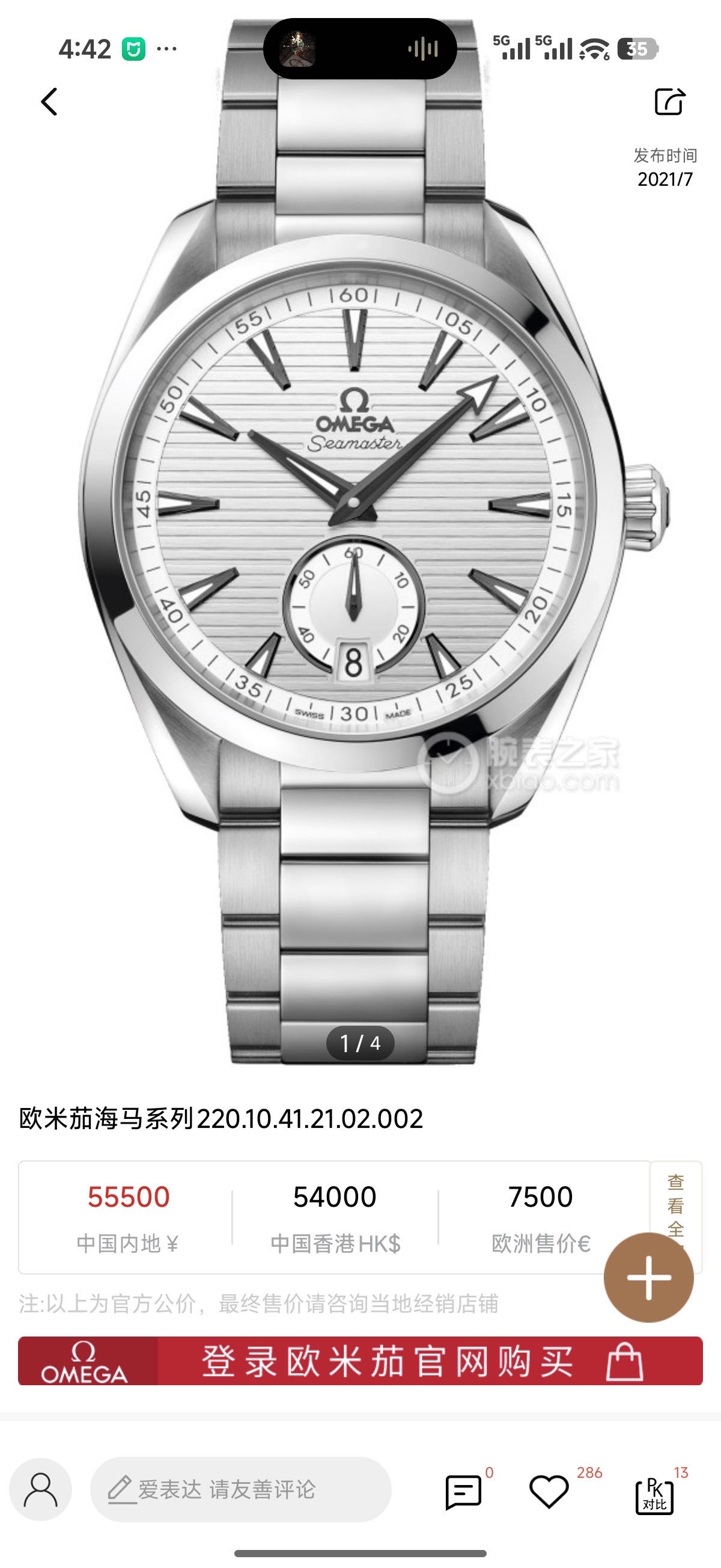 欧米茄/Omega 海马系列 AQUA TERRA 150米腕表 41毫米至臻天文台小秒针腕表 - 220.10.41.21.02.002 自动机械机芯 男表