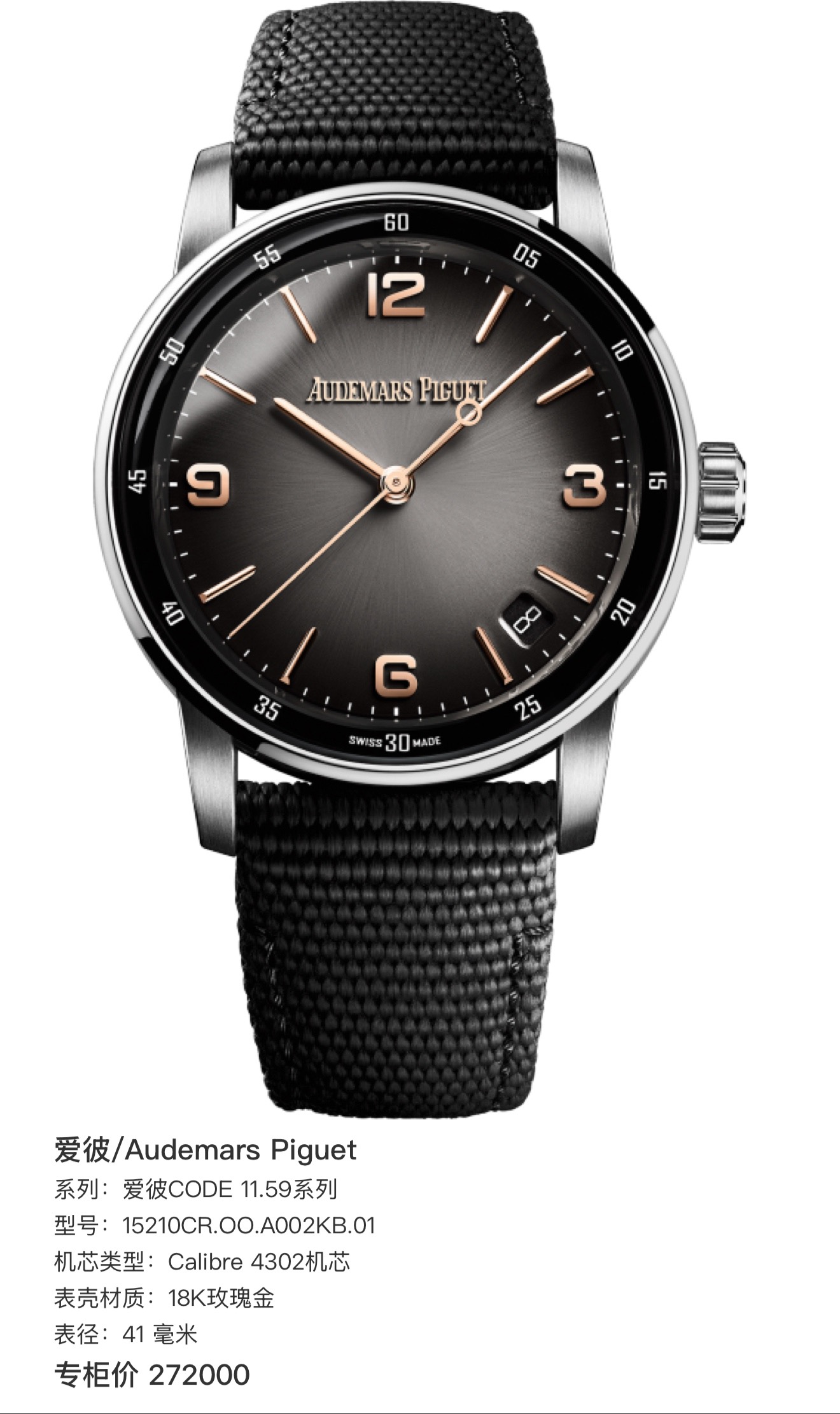 23年全套爱彼/Audemars Piguet 爱彼CODE 11.59系列 15210CR.OO.A002KB.01 Calibre 4302机芯 18K玫瑰金 41 毫米 专柜价272000。