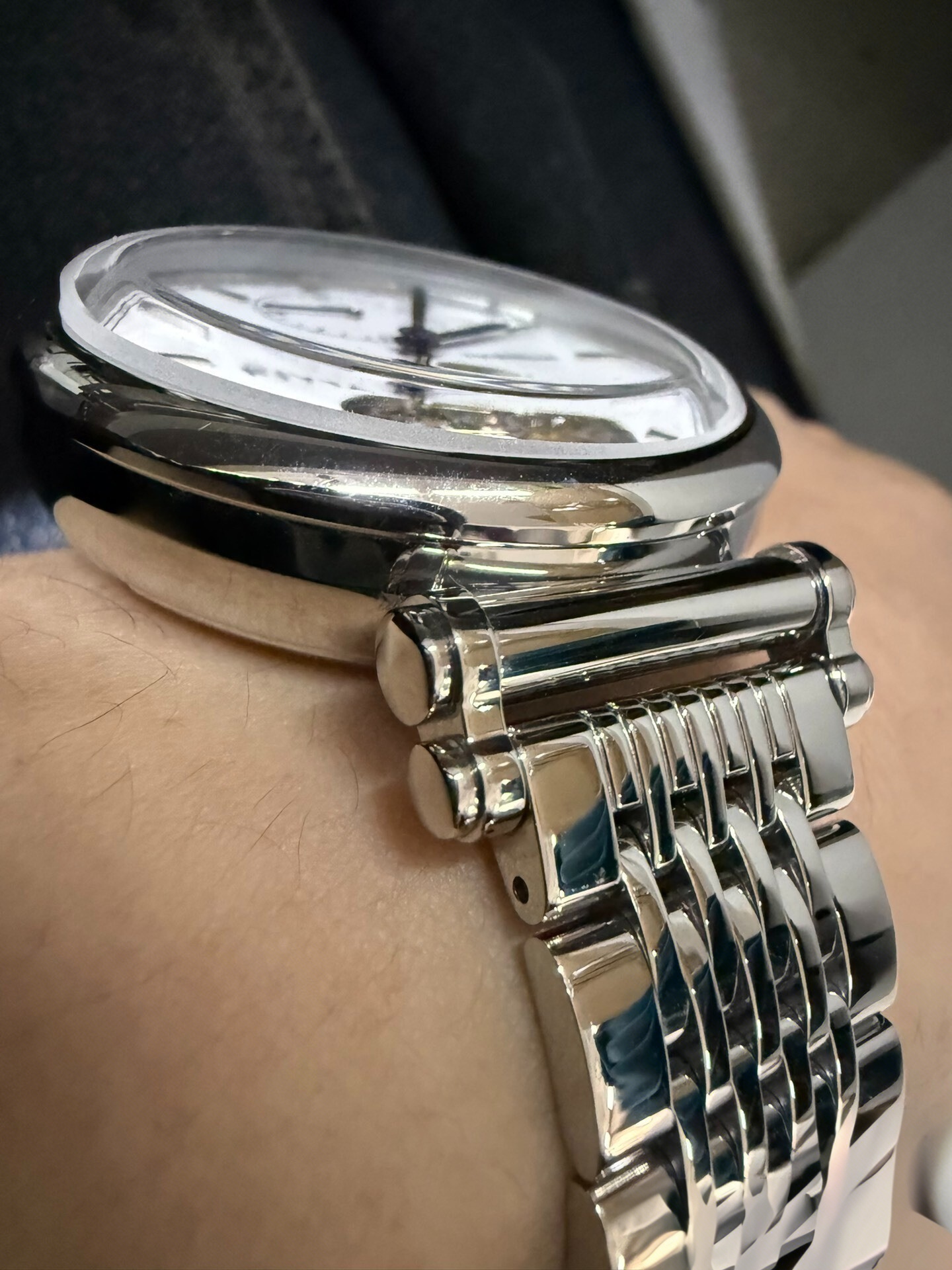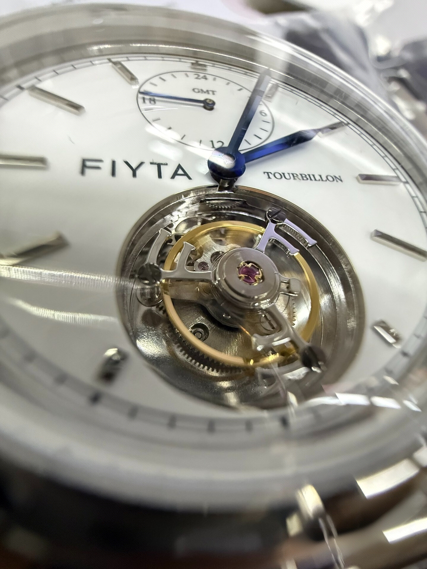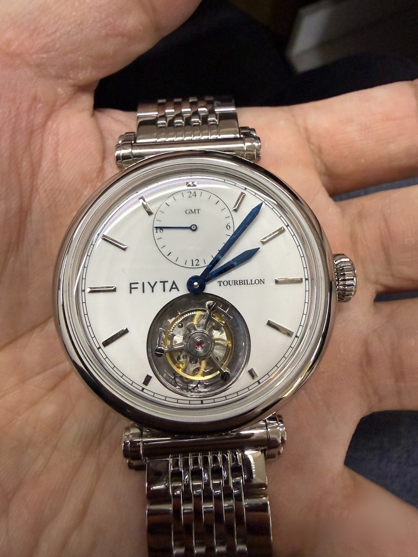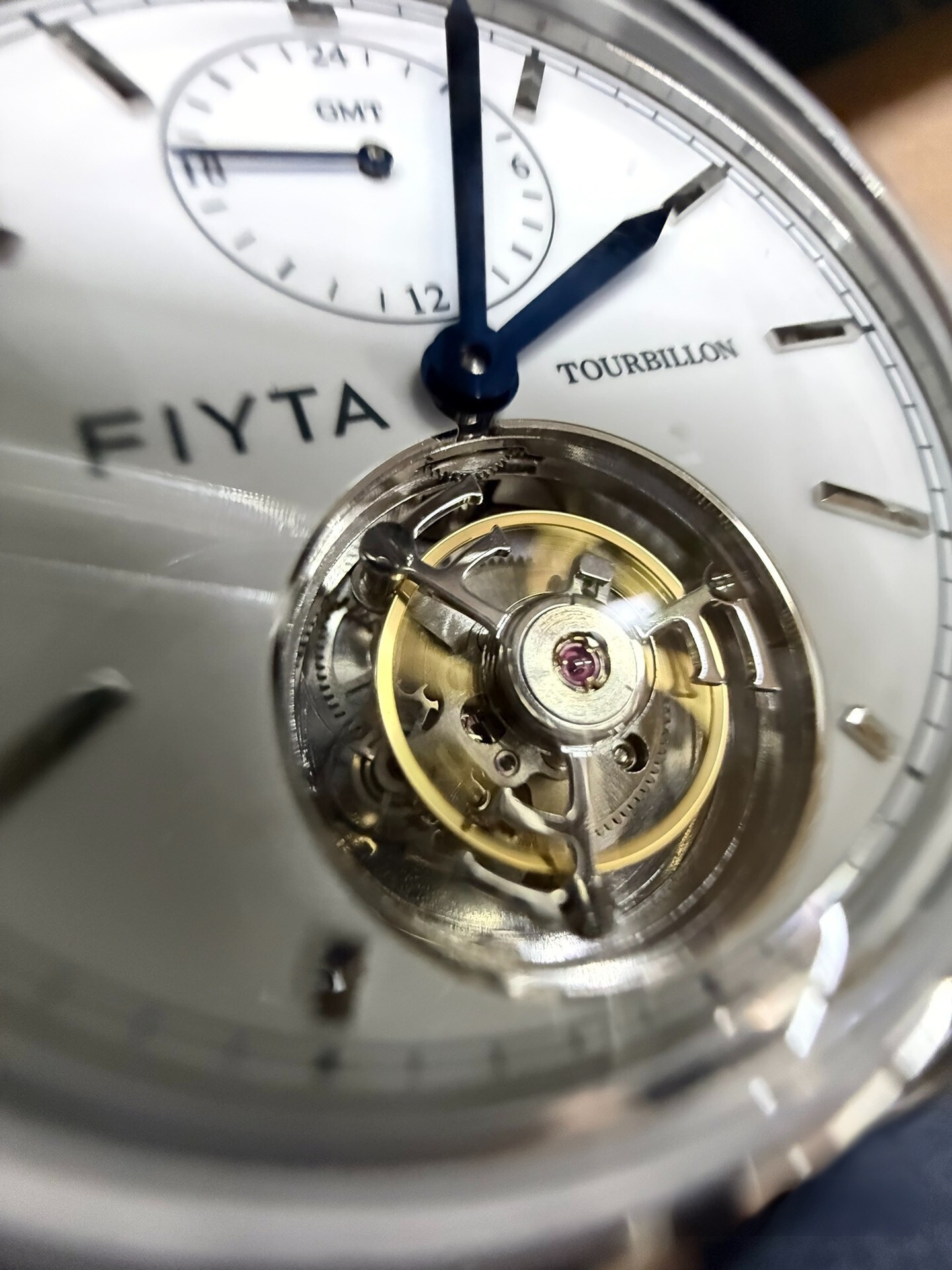 飞亚达“东方画卷”两地时陀飞轮,搭载陀飞轮自动机械机芯,表盘是搪瓷质感,象牙白色,特别温润,覆蓝指针很高级。12点位是两地时盘,可以跨国旅行的时候读取家乡时间。表耳是飞亚达印系列标志性的卷轴造型,表带背面有“榫卯”式按钮快拆结构,换表带无需工具,并且送一条棕色皮带,一表两戴,很有性价比。9珠链钢带,按制双开表扣,做工高级。