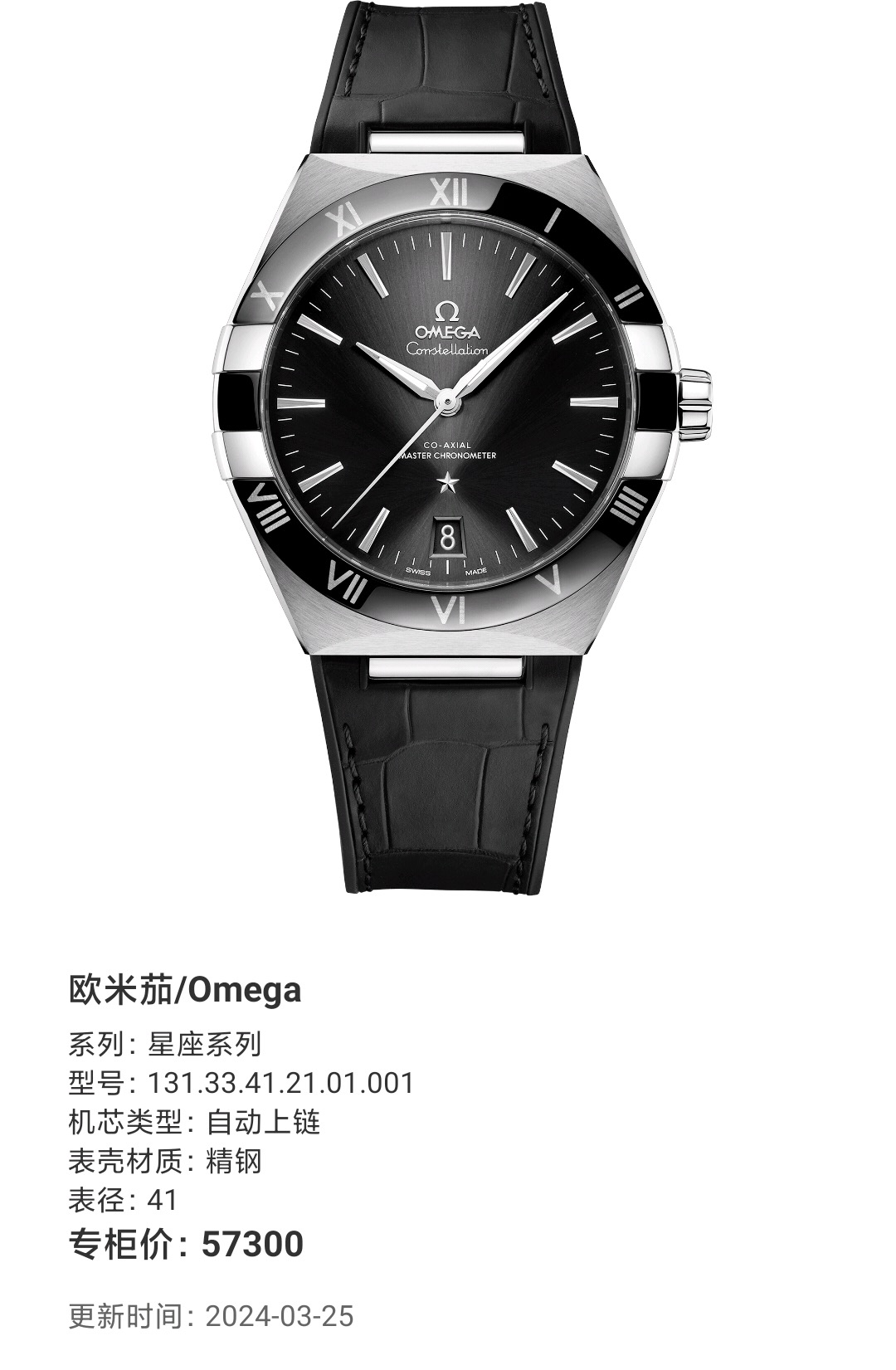 欧米茄/Omega 星座系列 五代曼哈顿131.33.41.21.01.001 自动上链8900机芯精钢 41 毫米专柜价57300