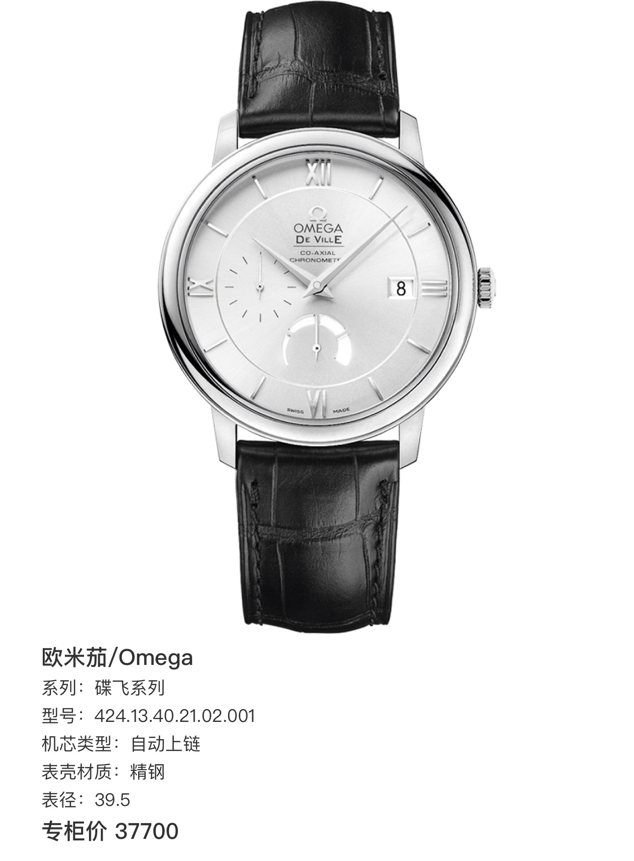 欧米茄/Omega 碟飞系列 424.13.40.21.02.001 自动上链 精钢 39.5 专柜价37700