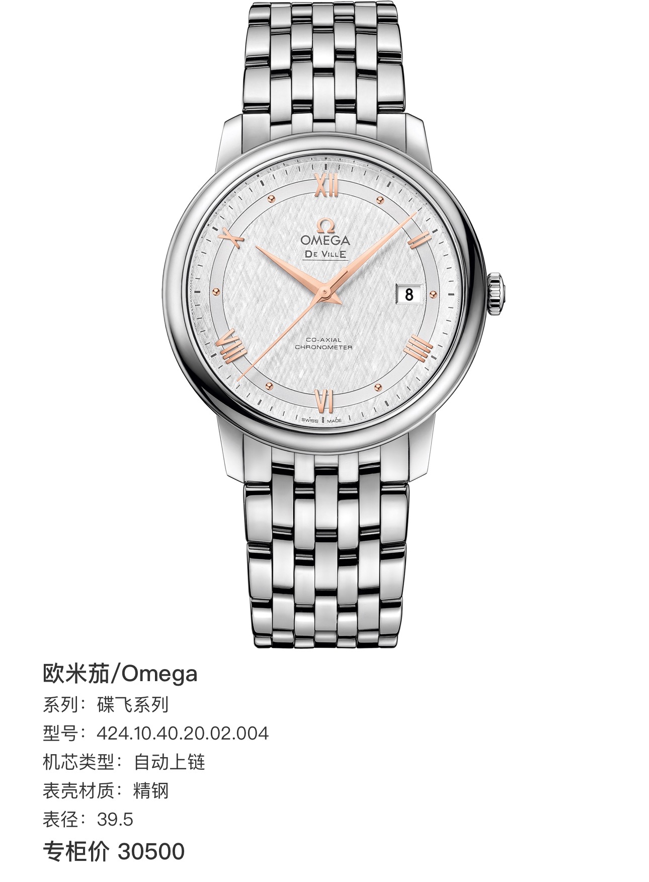欧米茄/Omega 碟飞系列 424.10.40.20.02.004 自动上链 精钢 39.5 专柜价30500