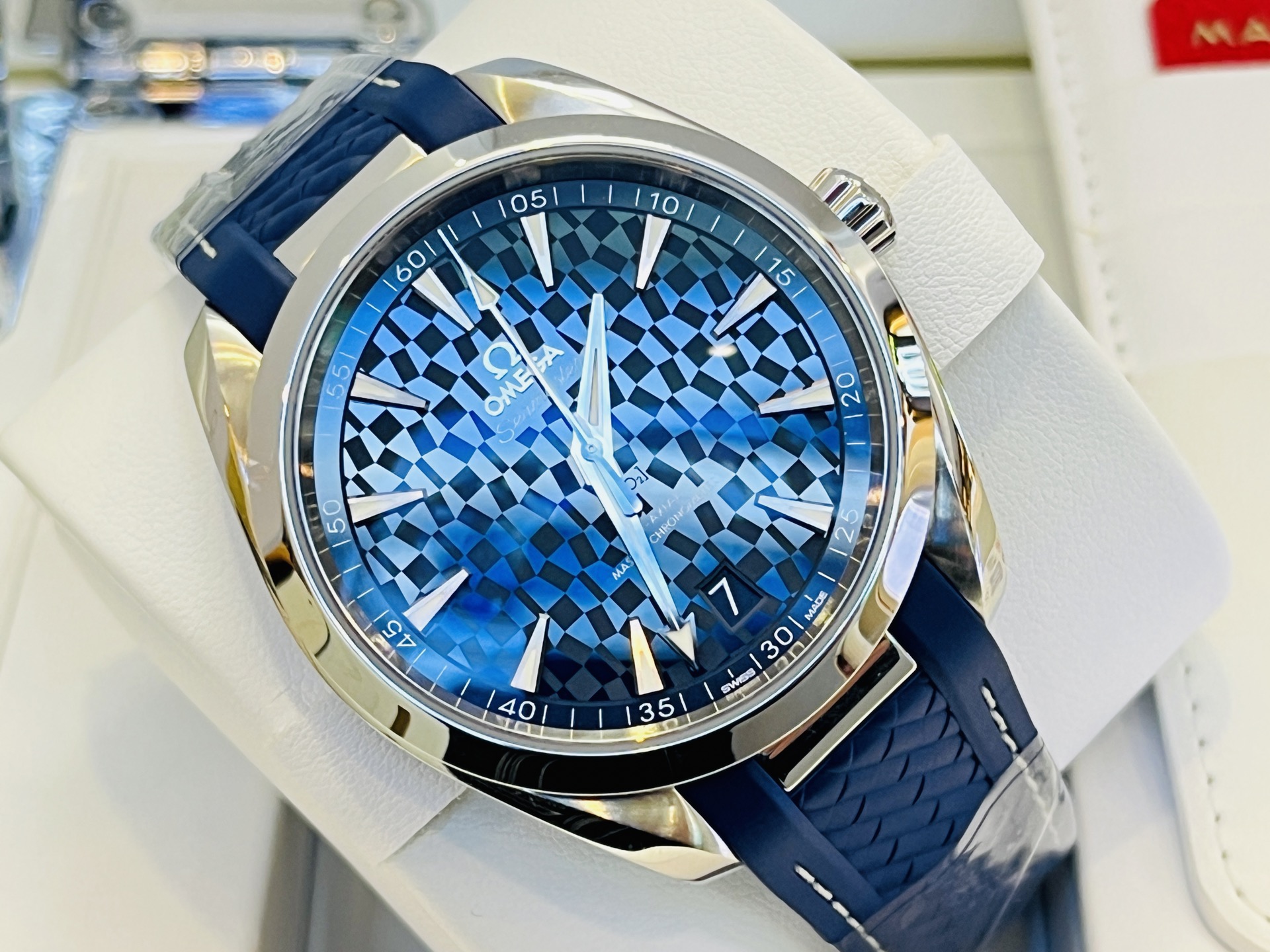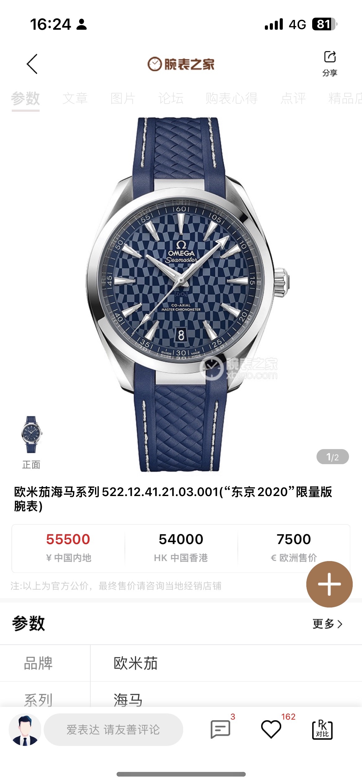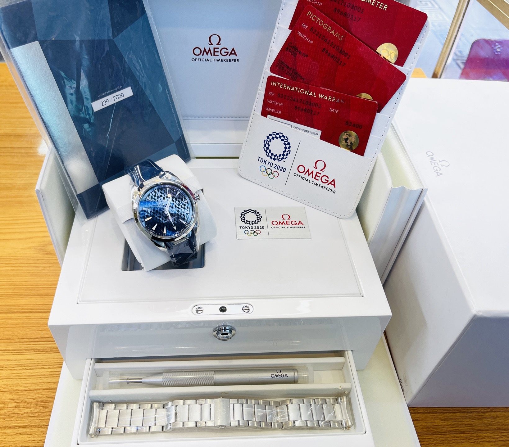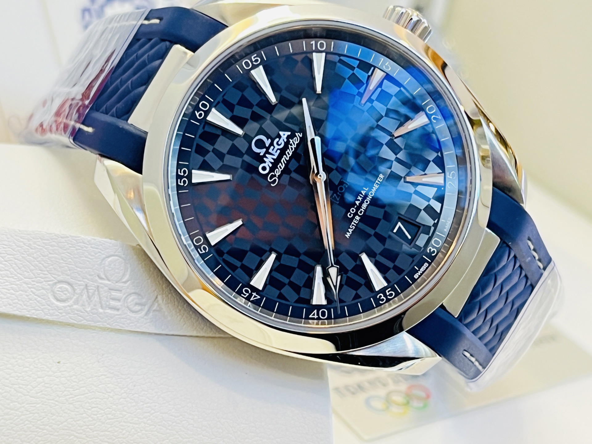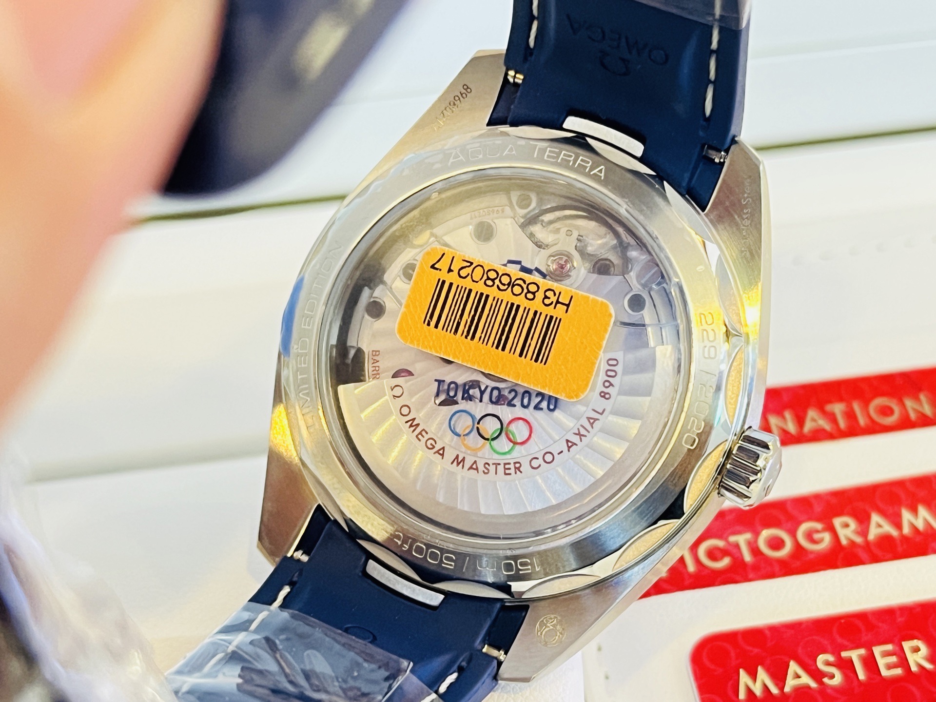 欧米茄海马系列522.12.41.21.03.001。 特别稀有表款。“东京2020限量版”全球限量2020枚。229/2020枚!表盘采用抛光陶瓷材质,AT8900同轴机芯。现全新全套、空白保卡。(2026年购入、原装双表带!)表径41mm,实物比图片更漂亮,热门运动表款,工价55500,现未使用品全套好价