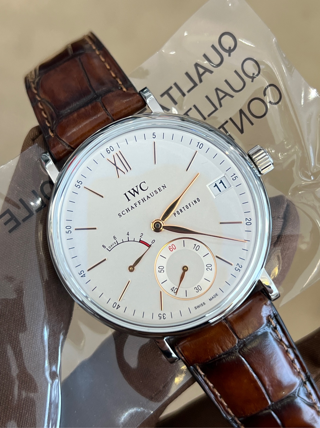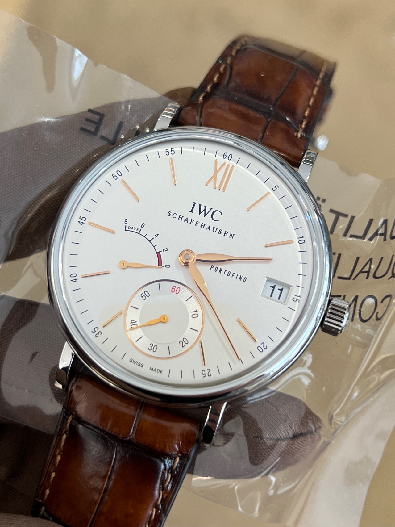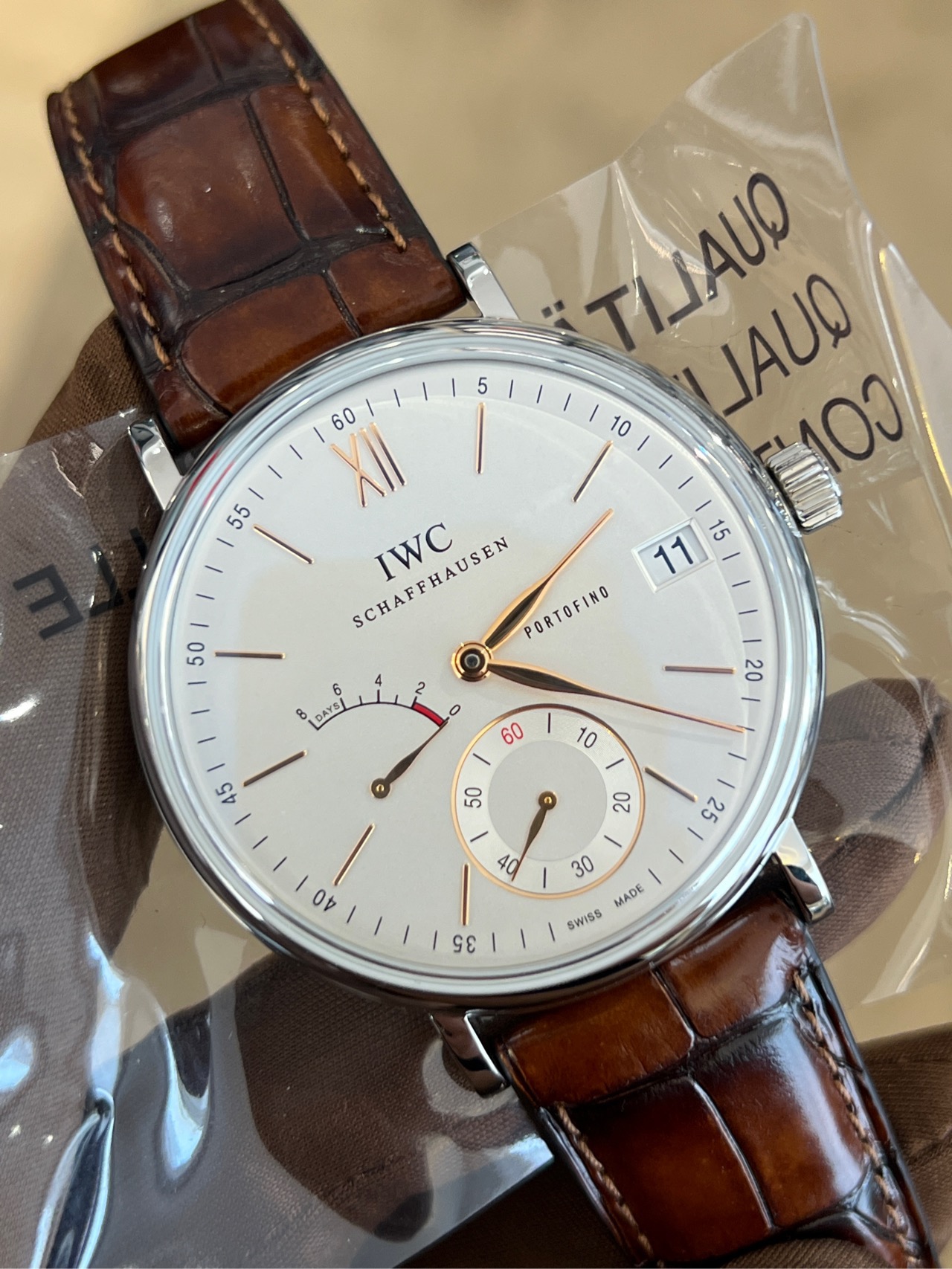 万国柏涛菲诺系列IW510103 男表 手动机械 45mm表径 自产八日链机芯59210 动力储存高达192个小时8天时间 白盘金针 动力储存显示日期显示功能 颜值 做工 性价比超高!客户收礼未使用品 全新 店里现货现在只要