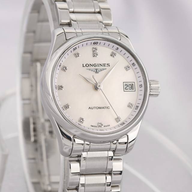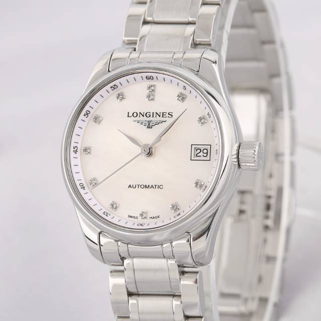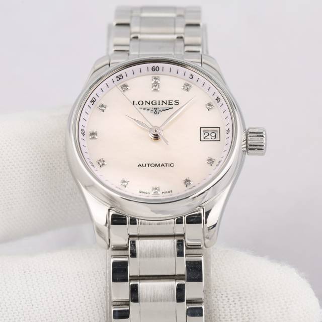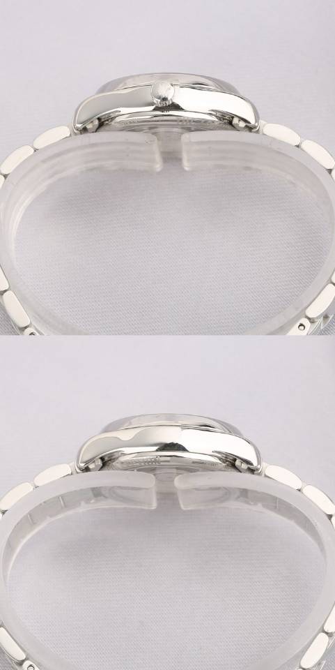 表盘材质:珍珠贝母,镶嵌12颗顶级韦塞尔顿VS-SI级钻石,总重0.034克拉。