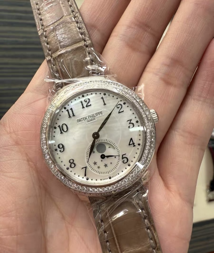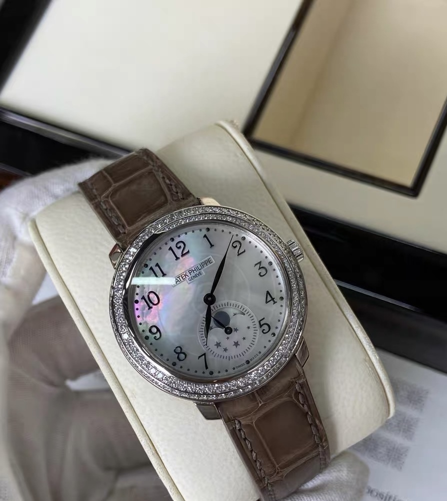 33mm表径,18k白金材质,月相显示,镶钻表壳
