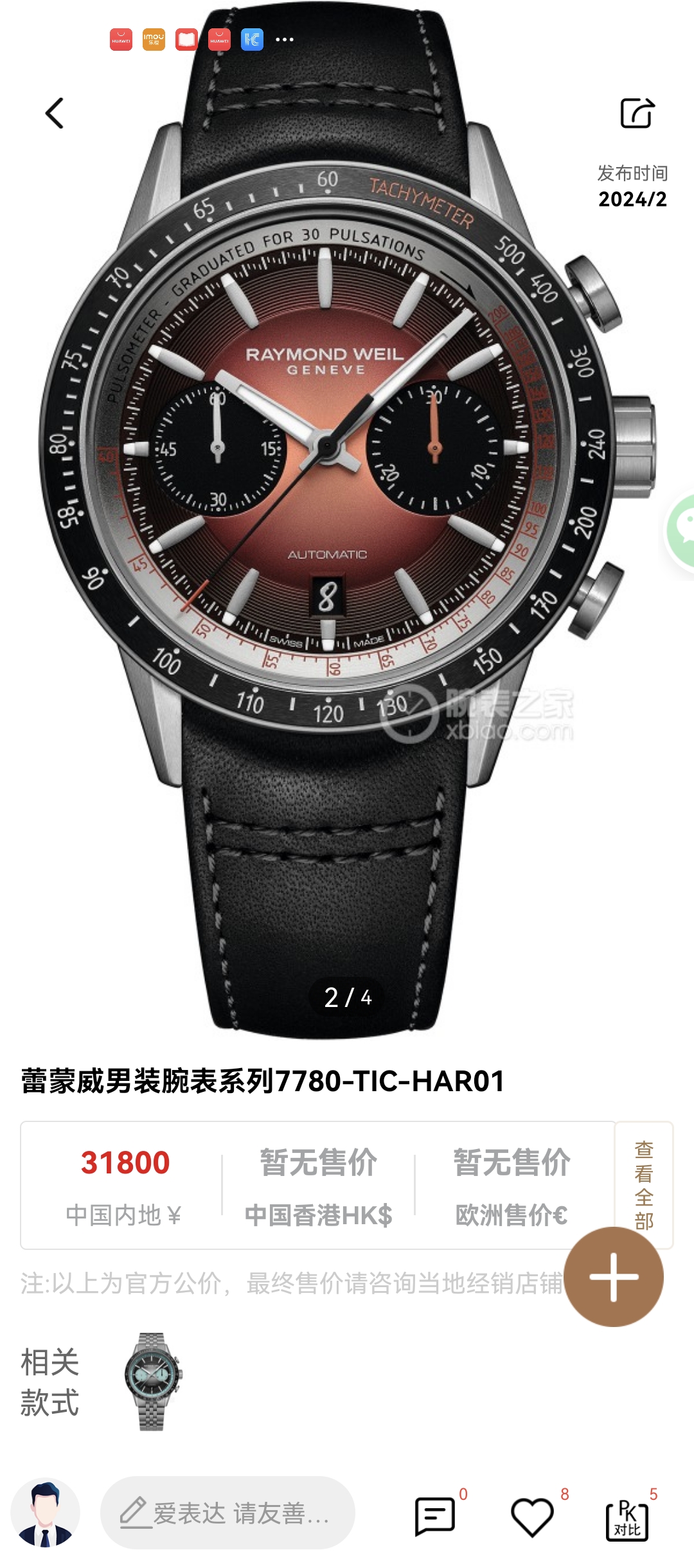 蕾蒙威男装腕表7780-TIC-HAR01机械男性