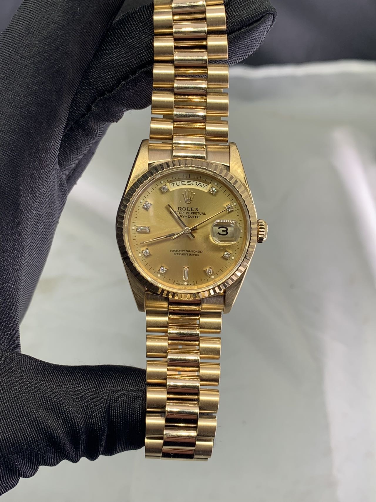 表径36,X字头,钻石时标,18k黄金材质