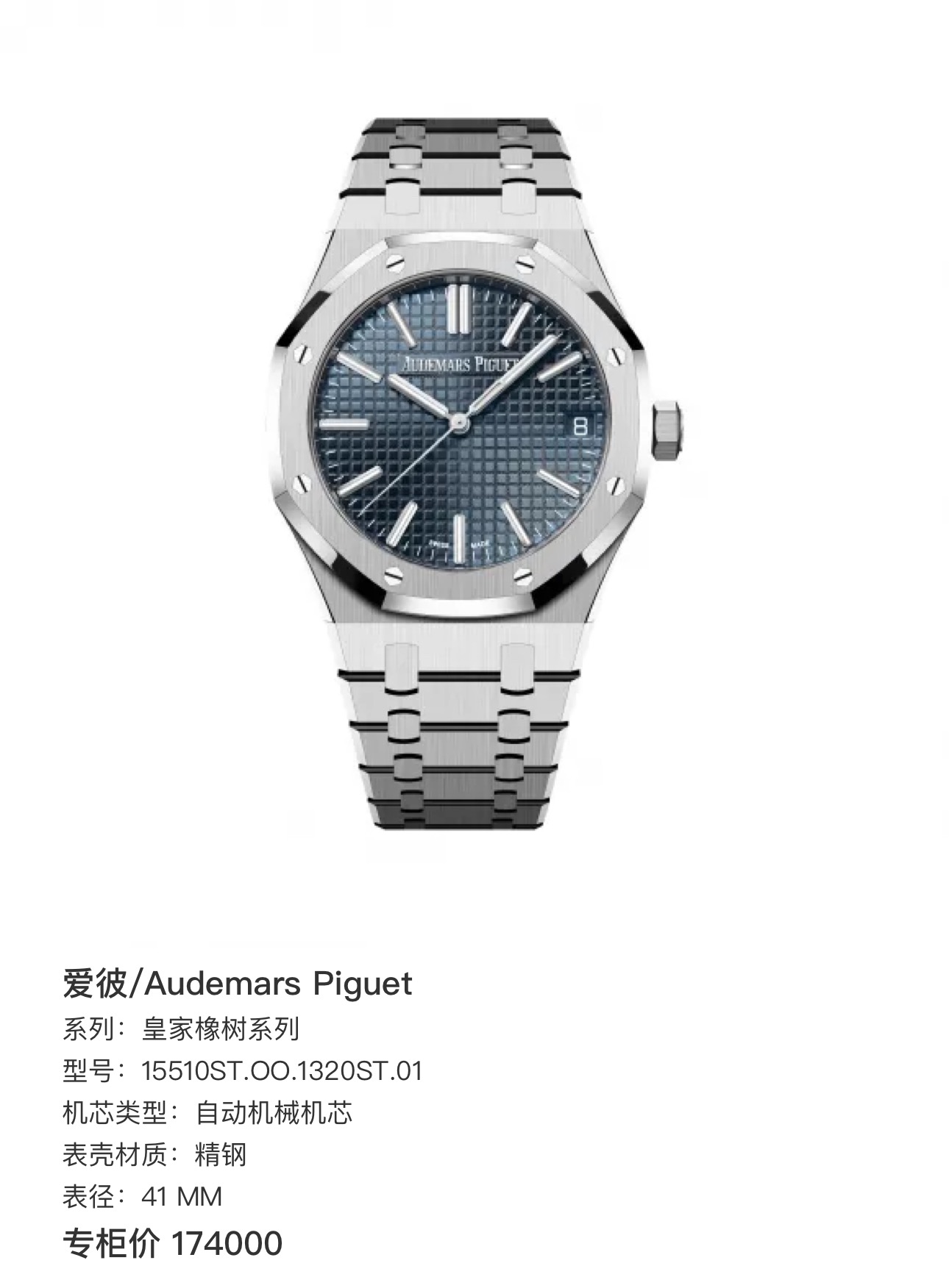 爱彼皇家橡树Royal Oak15510ST.OO.1320ST.01机械男性