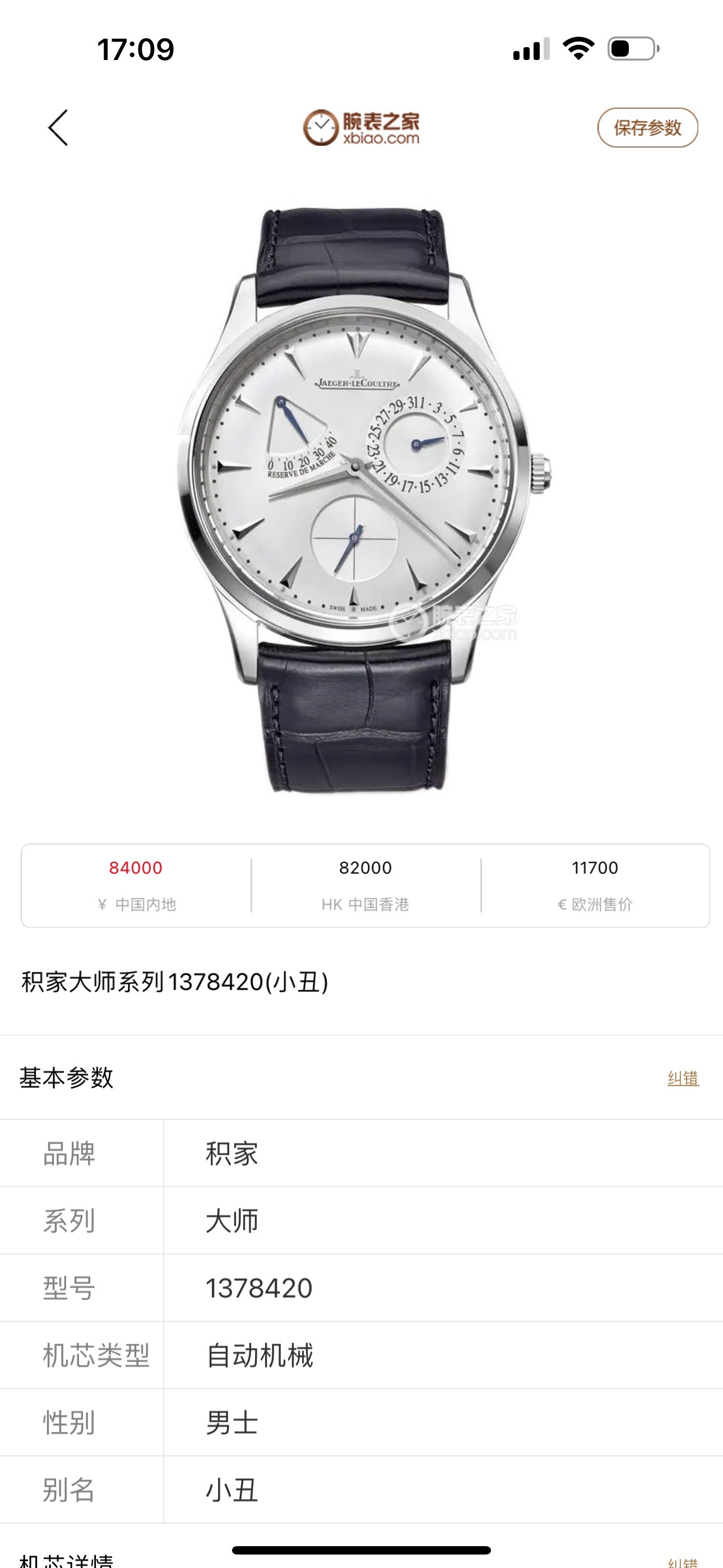 【积家】大师小丑系列⌚️Q1378420男士自动机械腕表 表径39毫米 自动上链机芯 动力显示表盘 透底机芯 折叠表扣 原价84000 店内现货好价。