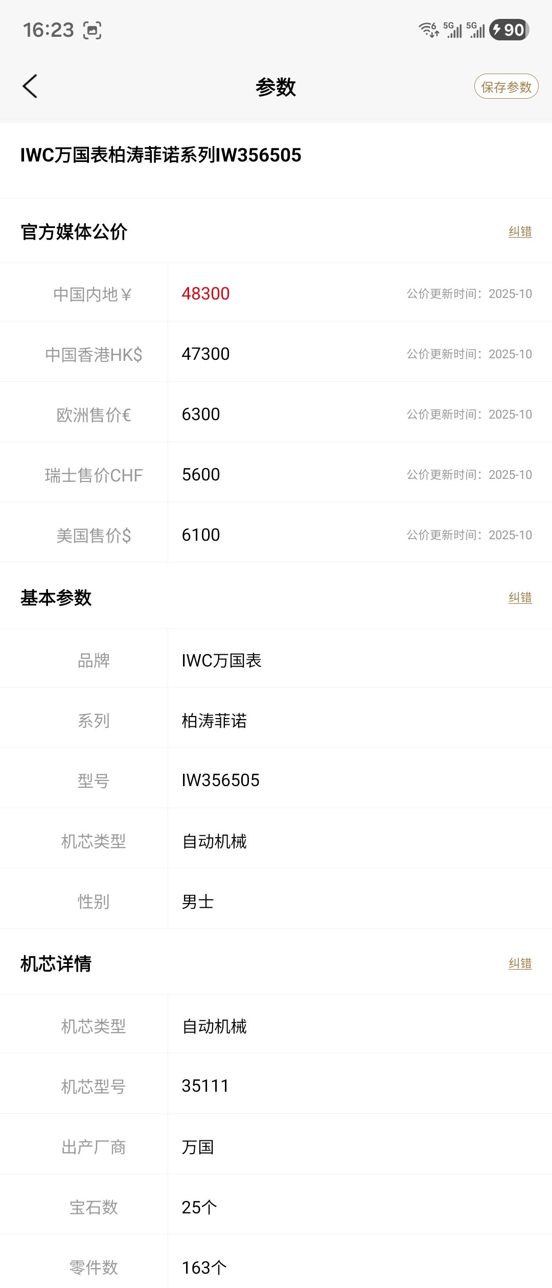 万国柏涛菲诺IW356505机械男性