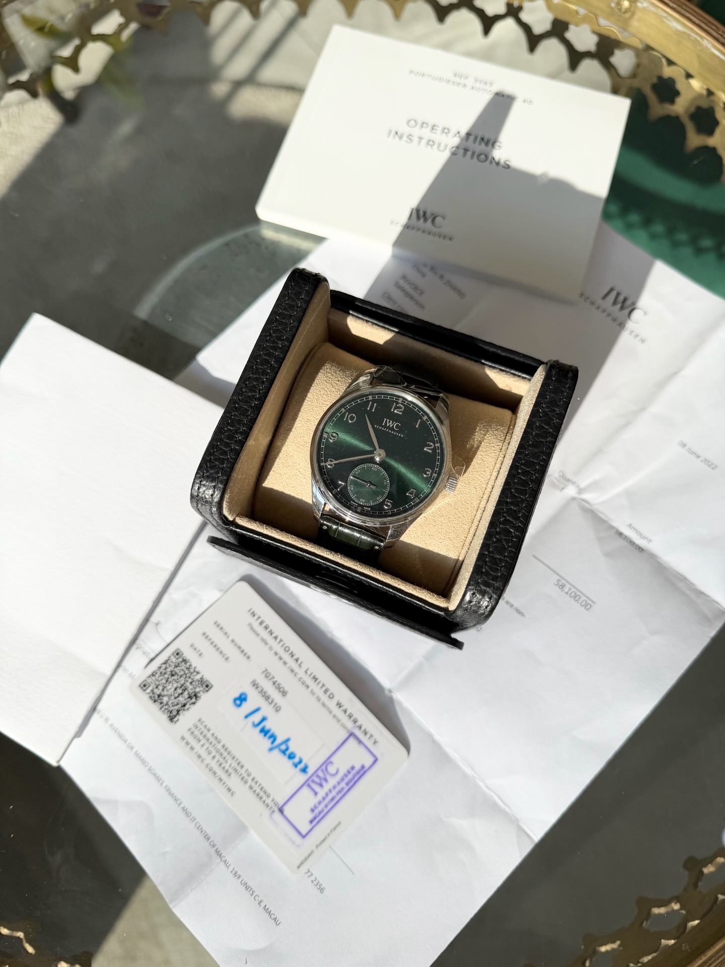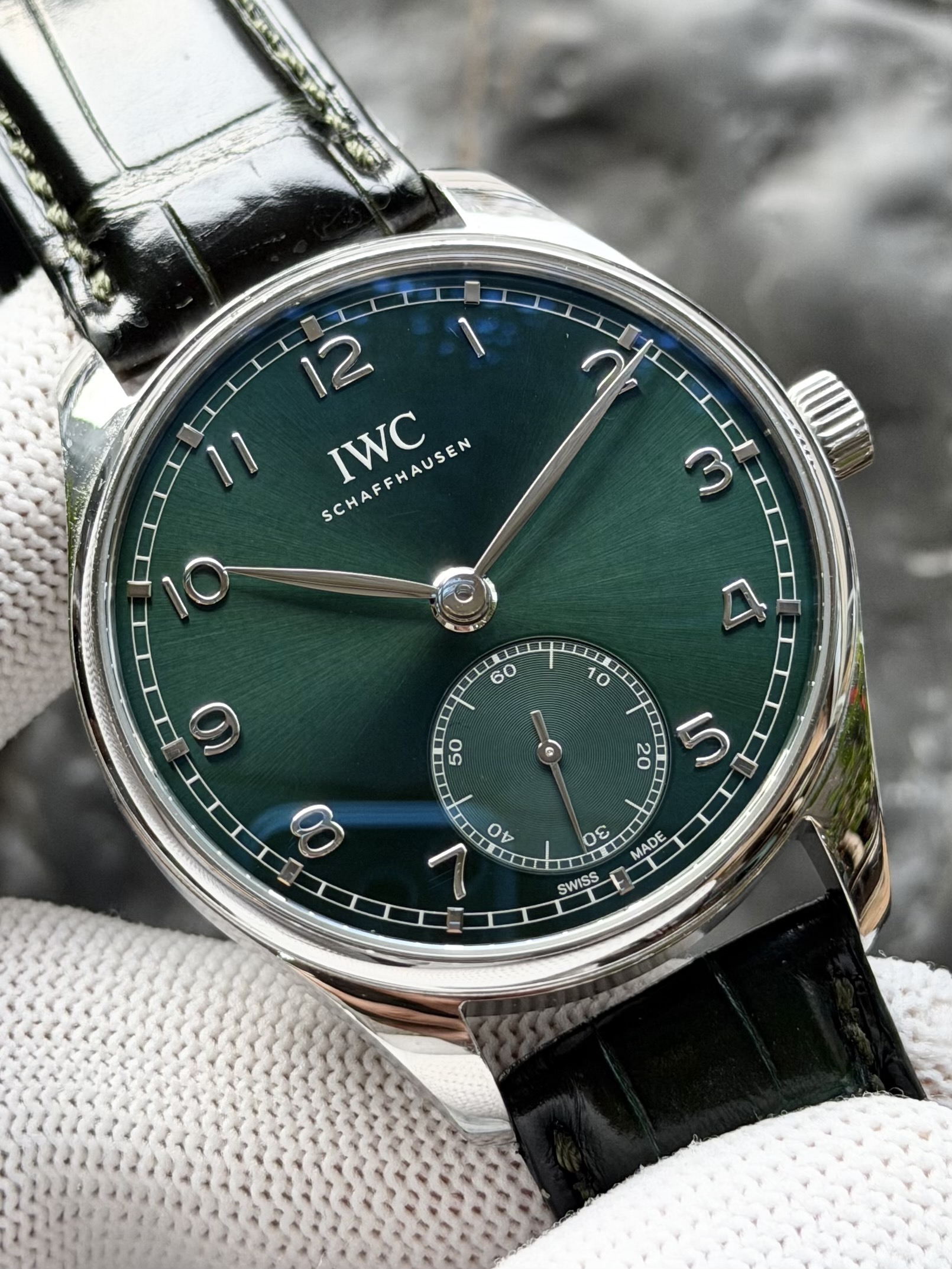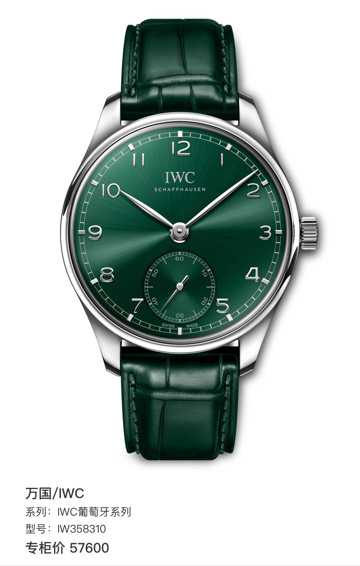 万国,葡萄牙系列,型号IW358310,绿盘(发财绿),表径40.4,搭载万国自产82200机芯,2022年全套,专柜价57600,现货好价