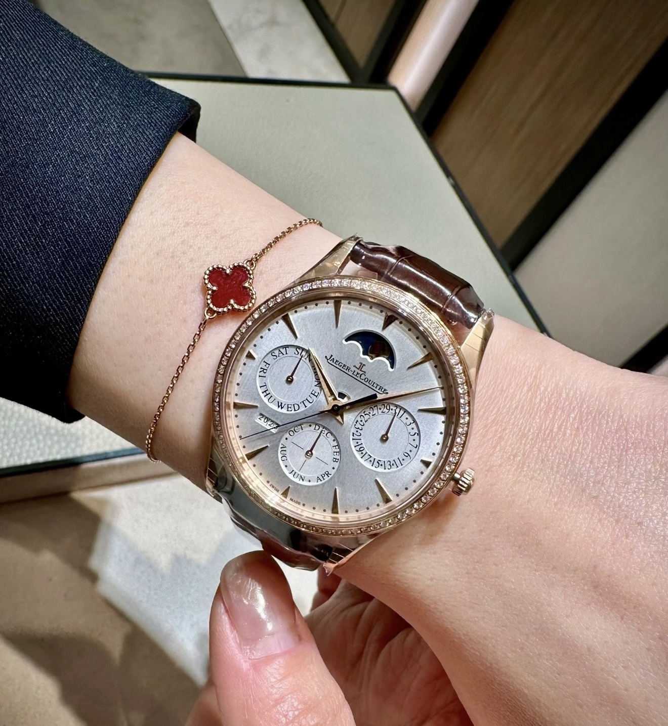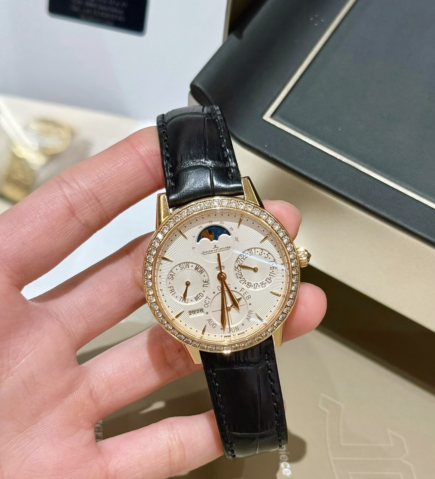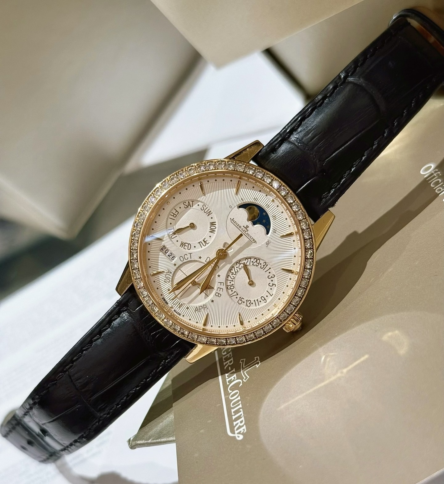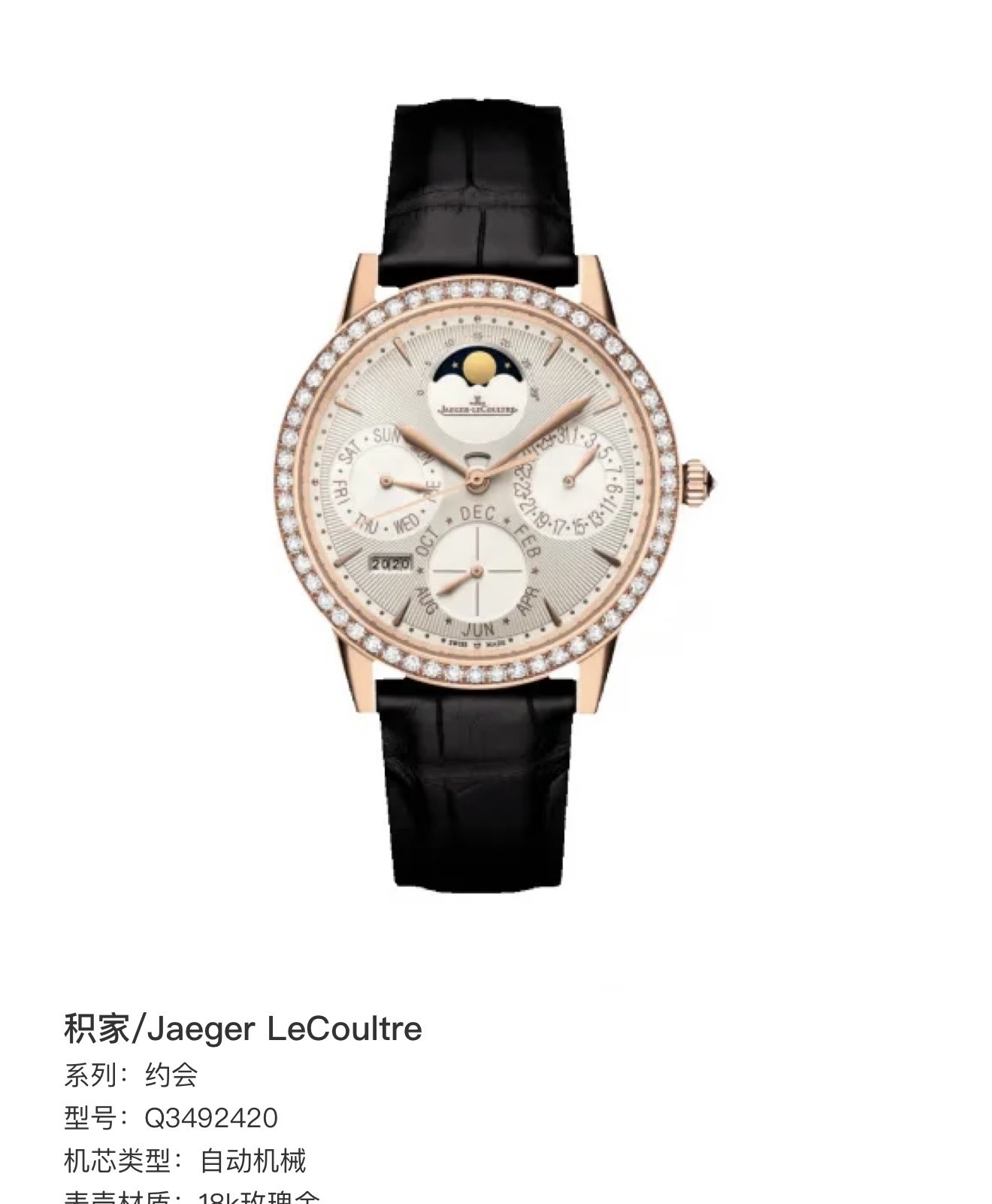 37mm表经,18k玫瑰金镶钻表壳,日期 星期 月份 年历
