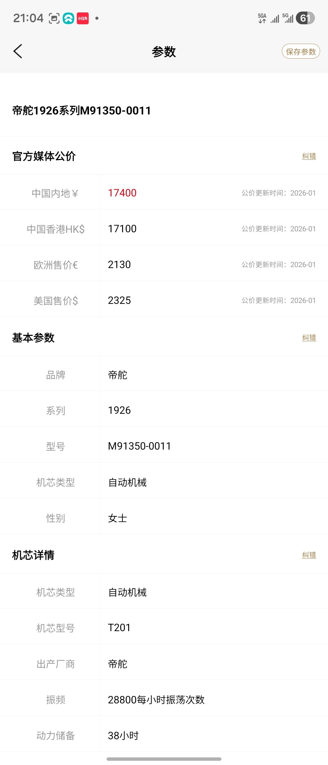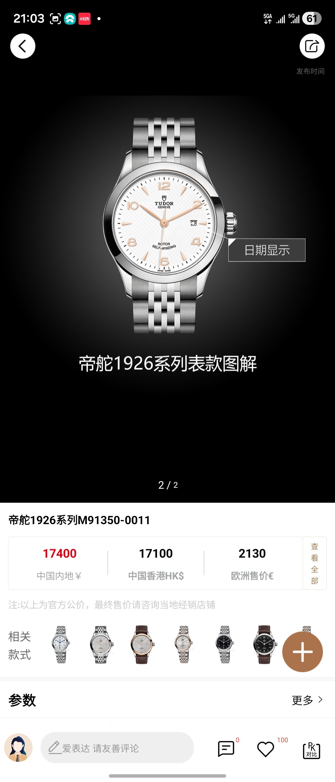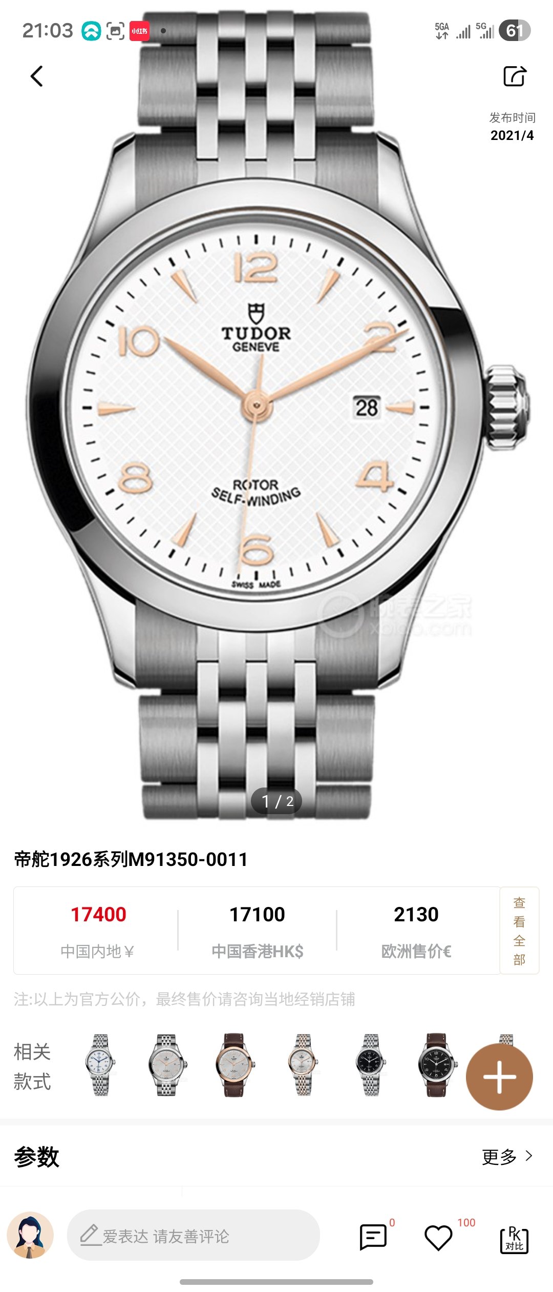 帝舵/Tudor 1926系列 m91350-0011 自动上链 钢表壳 28毫米 专柜价17400 24年12月保卡,国行未使用,大部分都在。