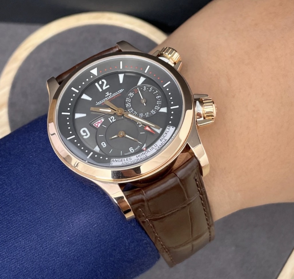 积家/Jaeger LeCoultre 极限运动大师系列Q1712440自动机械男士腕表,18k玫瑰金材质,41.5毫米表径,世界时、日夜时、两地时功能,专柜价237000,现单表好价